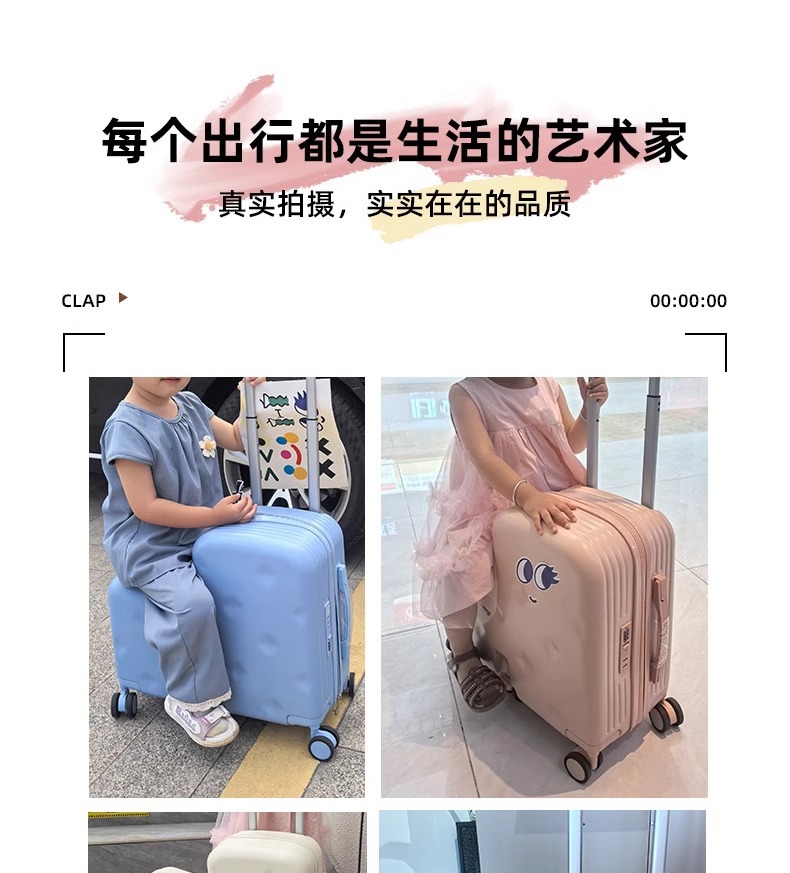 어린이용 여행가방, 엄마가 탈 수 있는 여행가방, 20inch 남아 및 여아 탑승용 여행가방, 비밀번호 상자스토어 가기