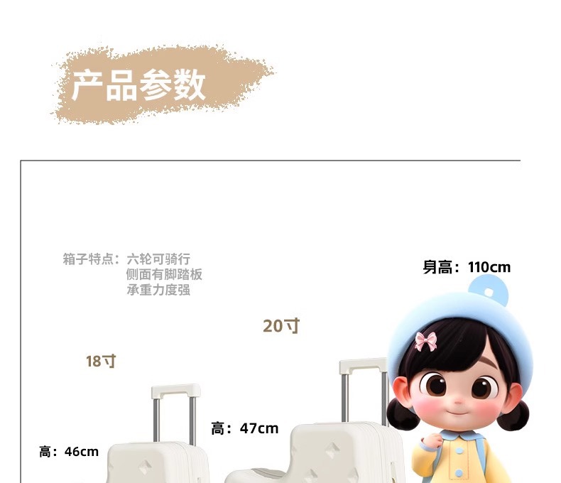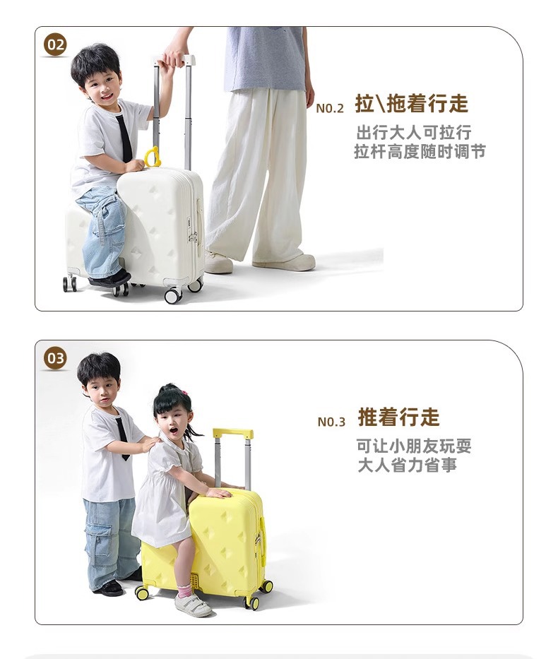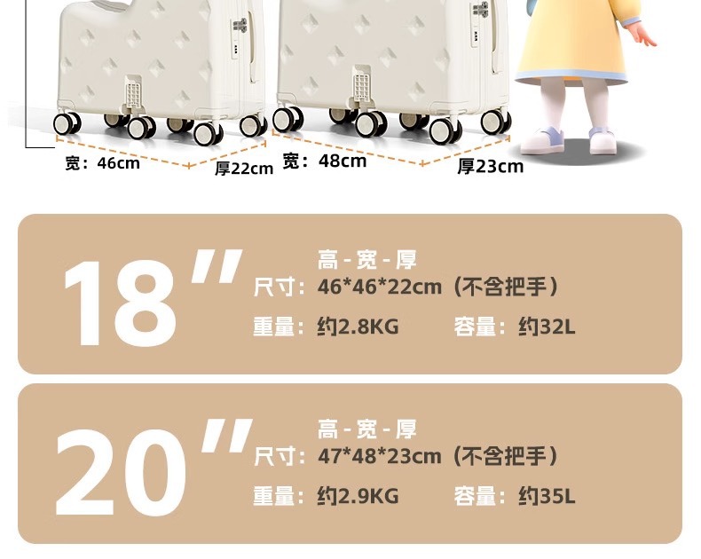 어린이용 여행가방, 엄마가 탈 수 있는 여행가방, 20inch 남아 및 여아 탑승용 여행가방, 비밀번호 상자