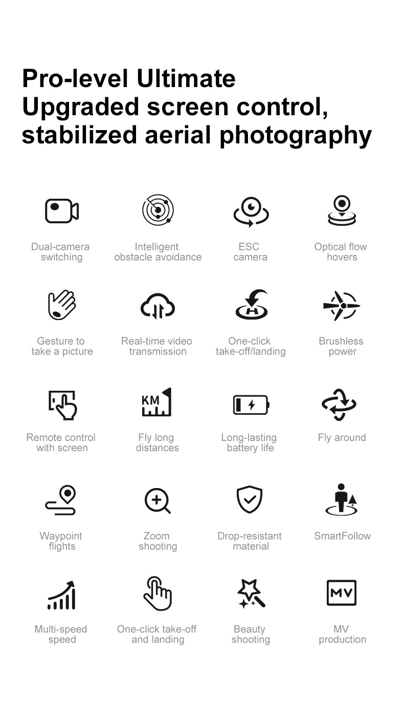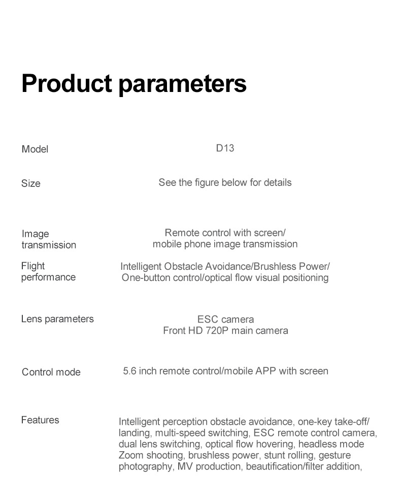 스크린 제어 기능이 있는 국경 간 드론 D13 브러시리스 모터 5.6inch 듀얼 카메라 광학 흐름 지능형 호버링 항공 사진 원격 제어 항공기