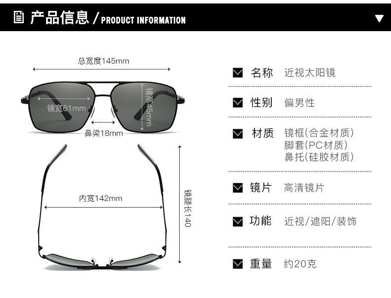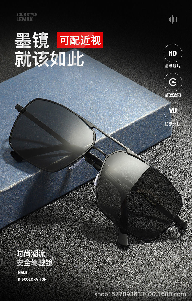 근시용 남성용 선글라스, 패셔너블한 대형 프레임 안경, 운전용 처방 선글라스 장착 가능, 눈부심 방지 고화질 운전용 안경