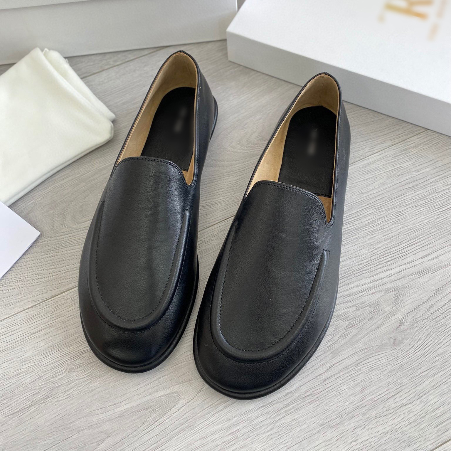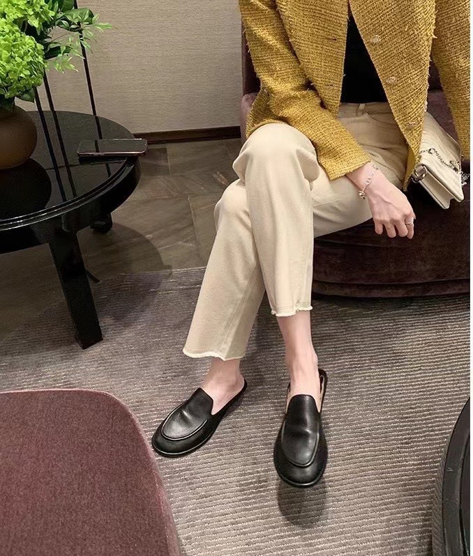 슬립온 로퍼, 둥근 발가락, 부드러운 밑창, 여성을 위한 다용도의 작은 가죽 신발, 다용도의 복고풍 플랫 슈즈