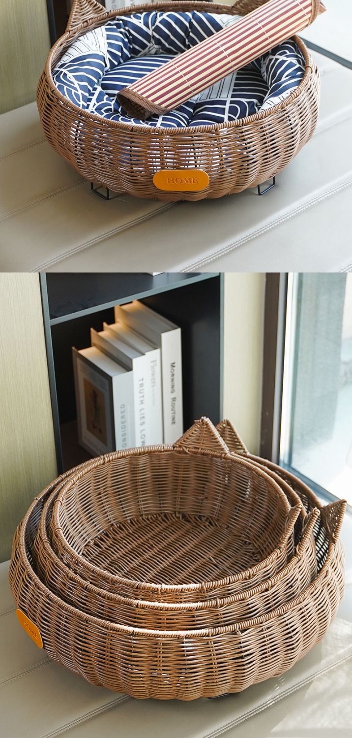 사계절 고양이 둥지, 지상 방습 고양이 수면 둥지, 모조 등나무 둥지, 탈부착 및 세탁 가능한 애완동물 침대, 야외 개집, 여름 둥지스토어 가기