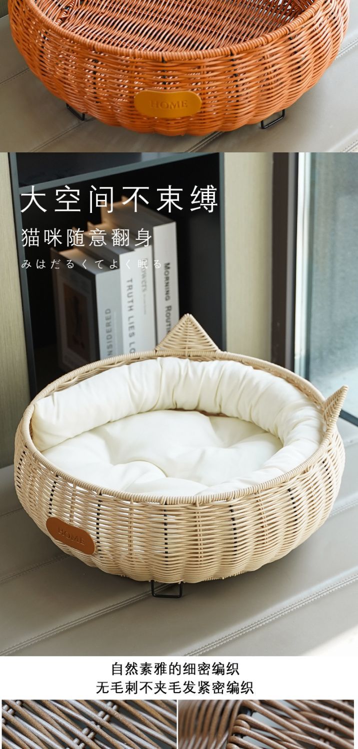 사계절 고양이 둥지, 지상 방습 고양이 수면 둥지, 모조 등나무 둥지, 탈부착 및 세탁 가능한 애완동물 침대, 야외 개집, 여름 둥지
