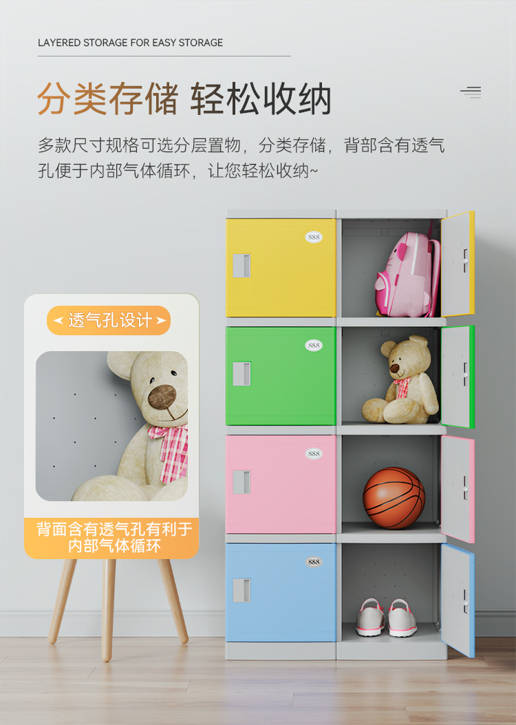 ABS 플라스틱 책가방 캐비닛 유치원 학교 교실 초등 및 중등 학생 클래스 잠금 장치가 있는 독립형 사물함 보관 캐비닛스토어 가기