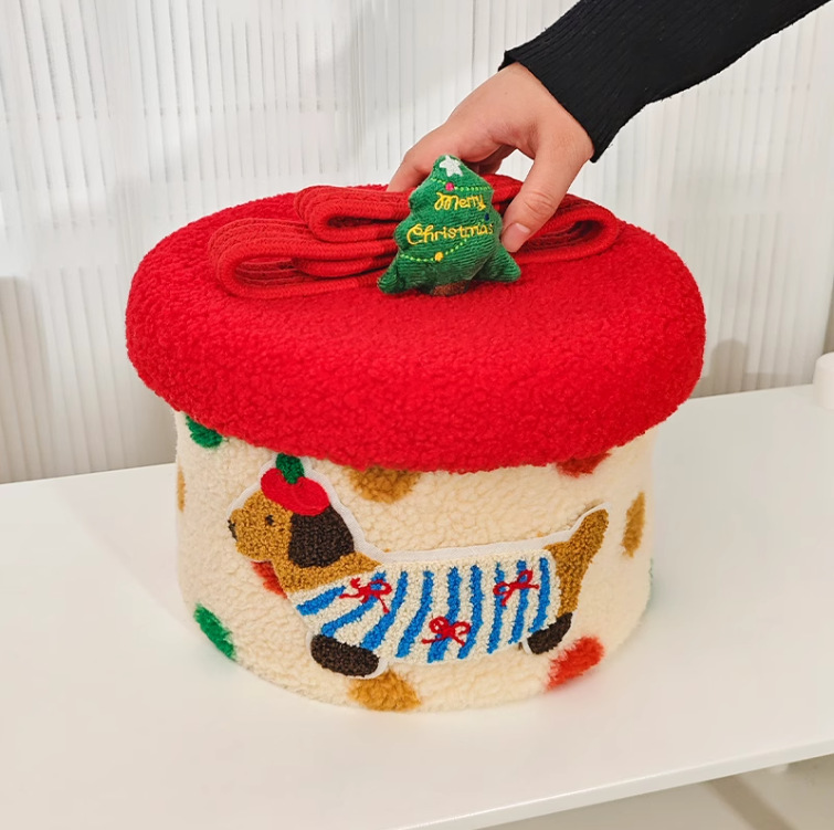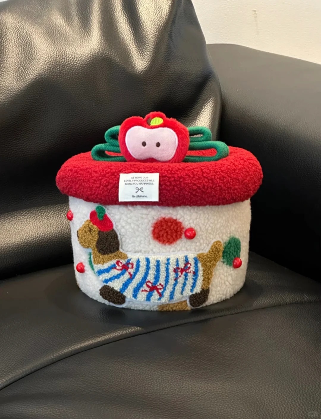 덮개가 있는 닥스훈트 개 보관 바구니, 새해 빨간색 데스크탑 스낵 및 잡화 보관, 가정용 보관 장식 장식품스토어 가기