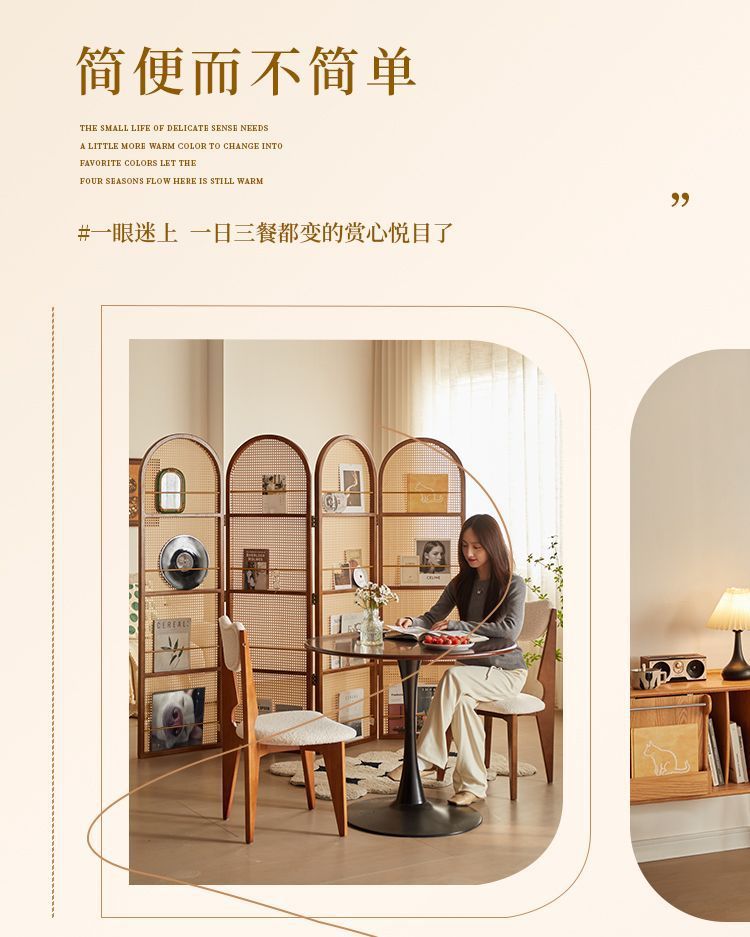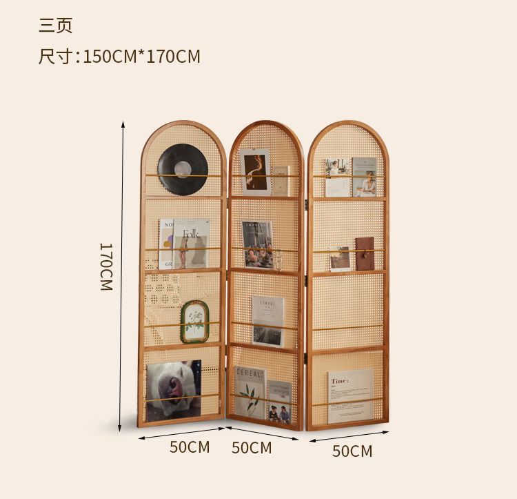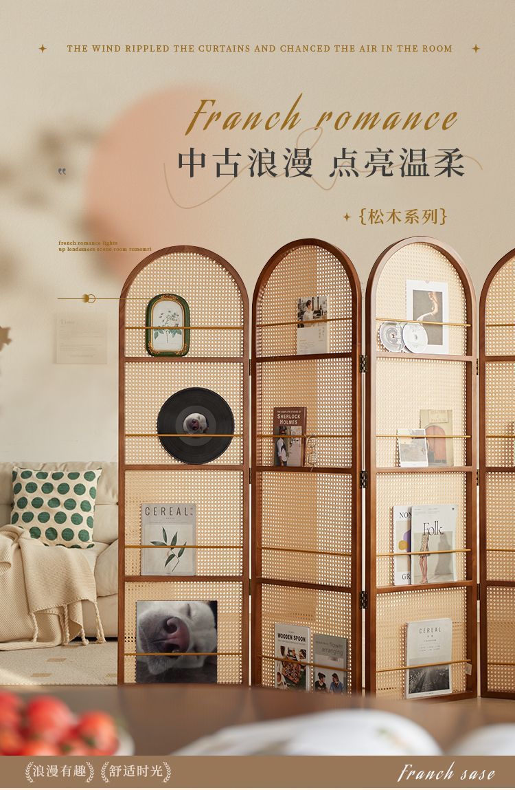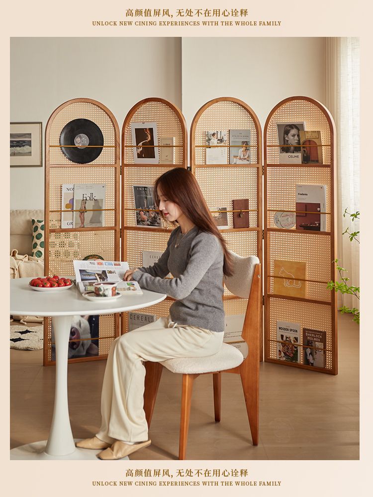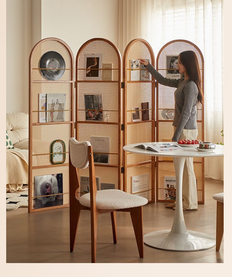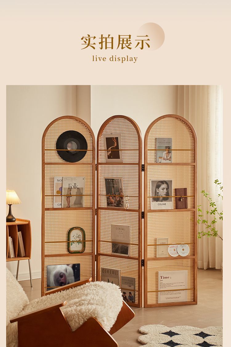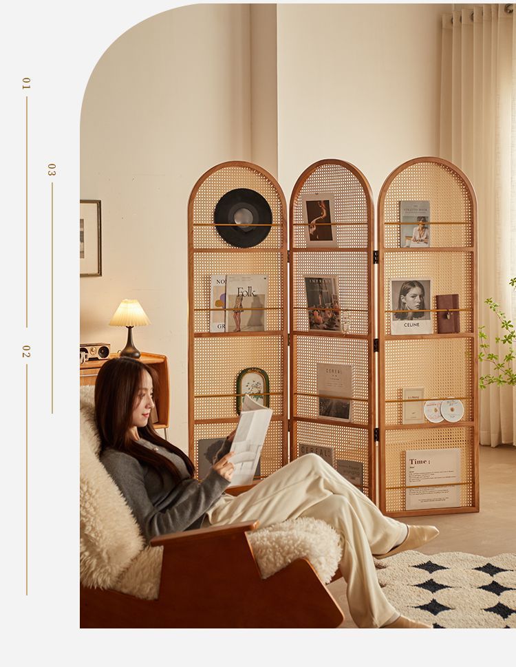 북유럽 스타일 등나무 스크린 파티션 아트 선반 전기 도금 목재 이동식 확장 거실 공간