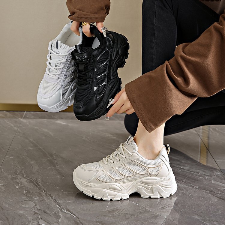 ins 한국식 아빠 신발 여성 2025 봄, 가을 로우 컷 플랫폼 캐주얼 운동화 레이스 업 두꺼운 밑창 흰색 신발