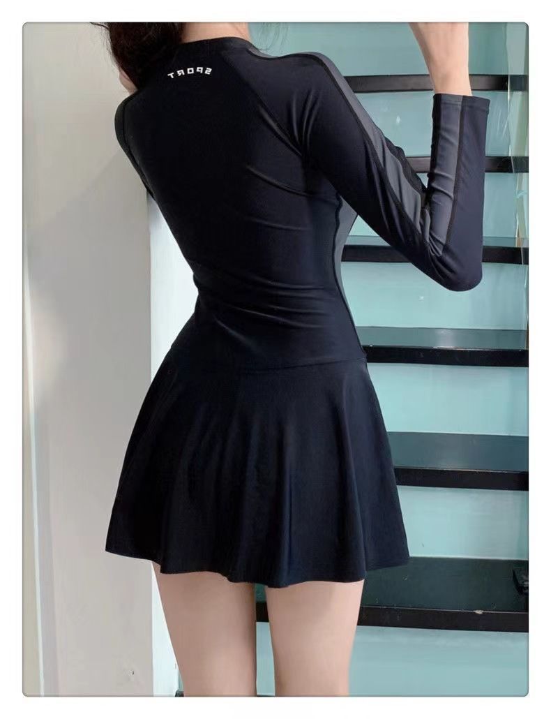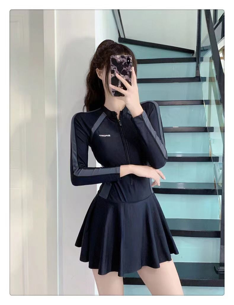 새로운 여성 스커트 스타일 원피스 신선한 여성 수영복 보수적인 긴팔 학생 온천 수영복 대외 무역스토어 가기