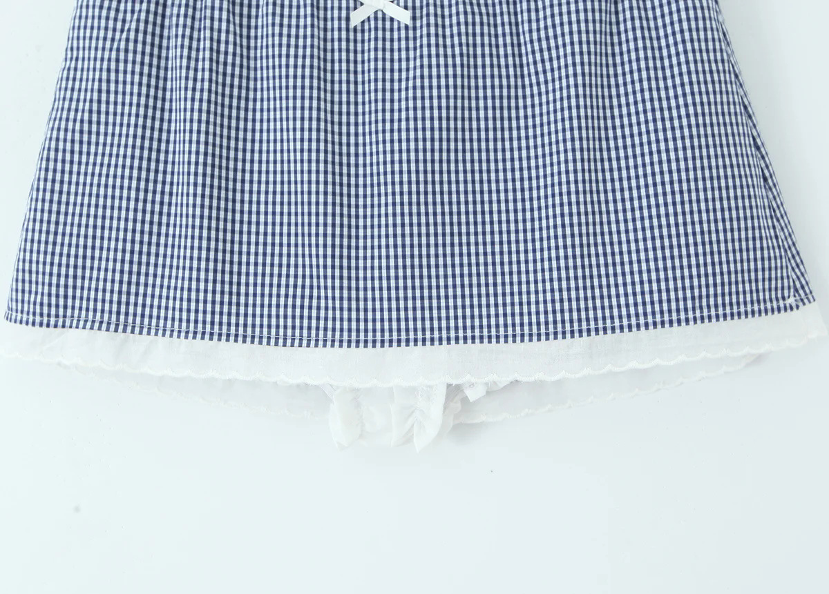 Pure Desire 25 여름 새 블로거 같은 스타일의 레이스 격자 무늬 셔츠 + 여성용 짧은 리본 스커트 정장