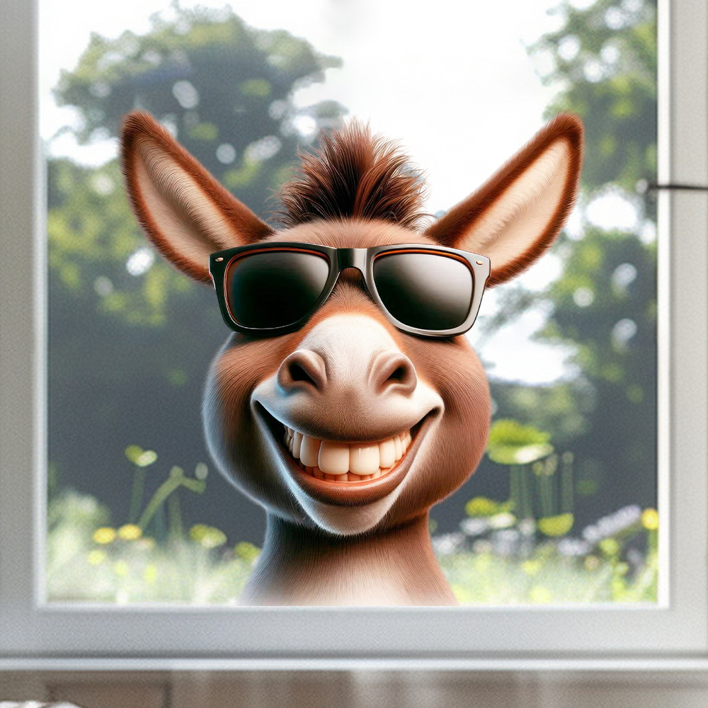 Yiyao JD3369 창의적이고 재미있는 작은 당나귀 동물 창 스티커 발코니 유리 창 이동식 스티커 접착제가없는 정전기 스티커스토어 가기