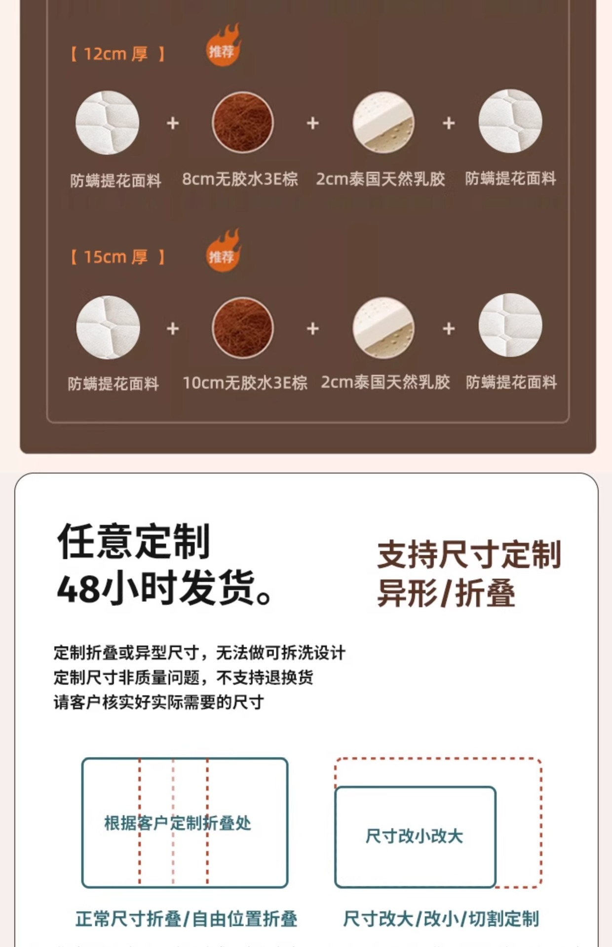 천연 코코넛 야자 매트리스 하드 매트 가정용 침실 접이식 10cm 두꺼운 야자 매트리스 임대 싱글 매트리스스토어 가기