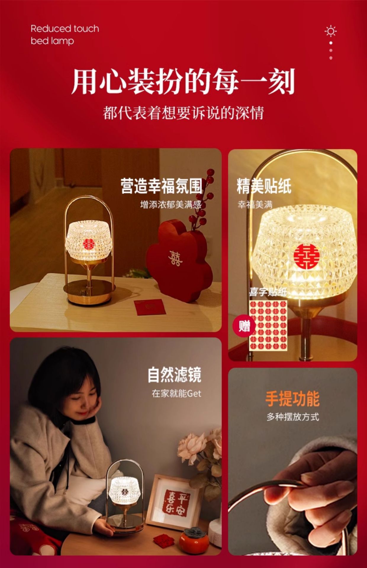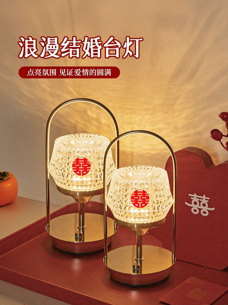 Changming 램프 웨딩 테이블 램프 웨딩 룸 빨간색 머리맡 램프 침실 신부 결혼식 램프 신혼 부부를위한 결혼 선물 쌍