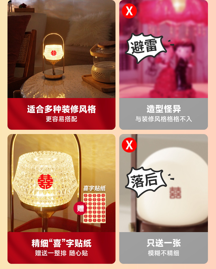 Changming 램프 웨딩 테이블 램프 웨딩 룸 빨간색 머리맡 램프 침실 신부 결혼식 램프 신혼 부부를위한 결혼 선물 쌍스토어 가기