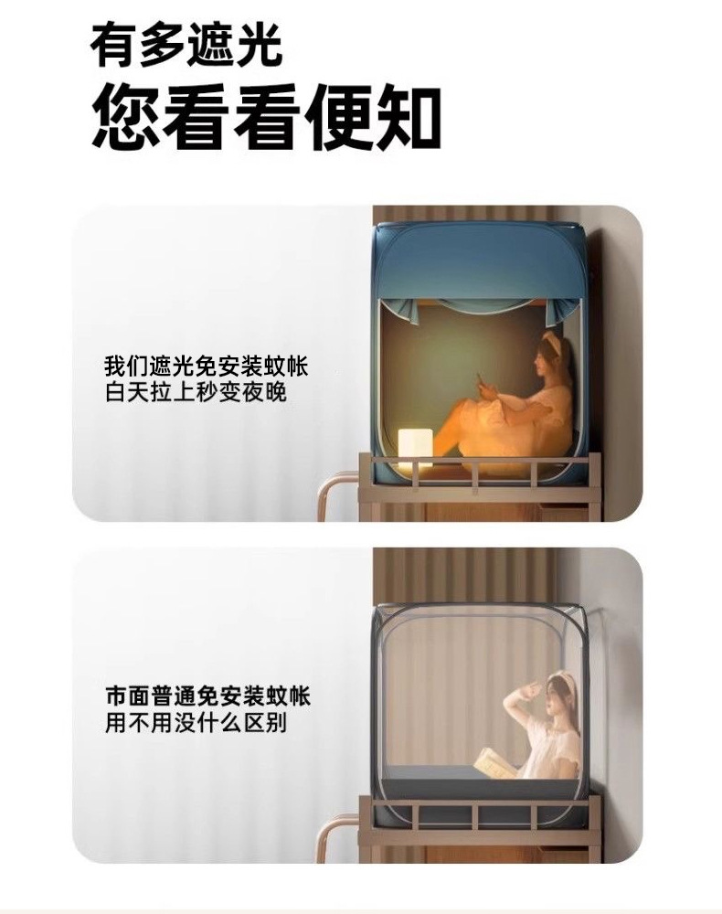 遮光蚊帐蚊帐三开门 蚊帐学生宿舍用 床帘蚊帐一体式 a类蚊帐 免安装蚊帐