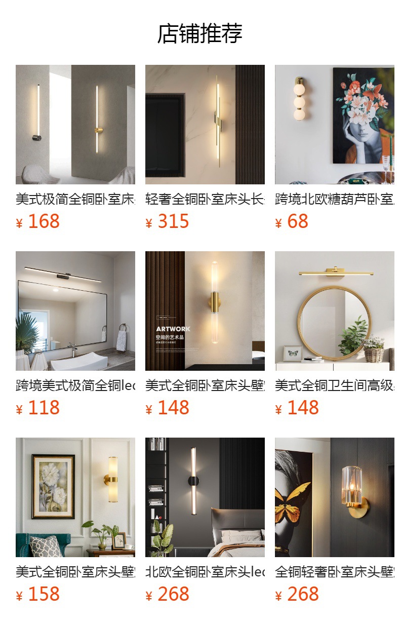 미국 미니멀리스트 침실 머리맡 벽 램프 크로스 보더 실내 호텔 빌라 거실 배경 벽 통로 계단 복도 램프스토어 가기