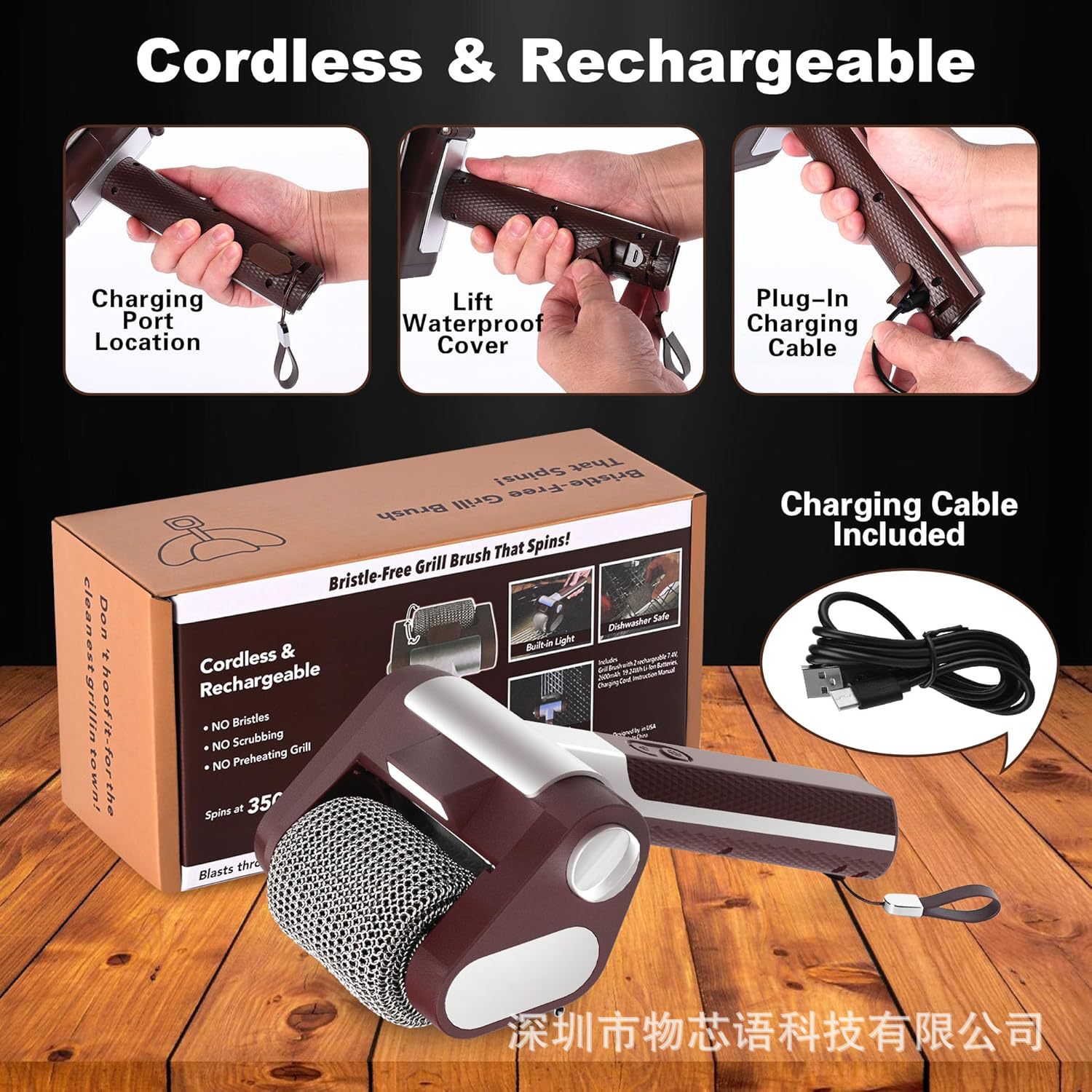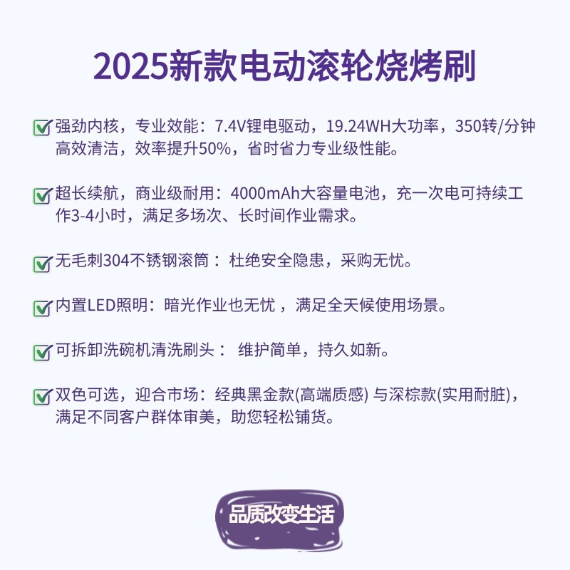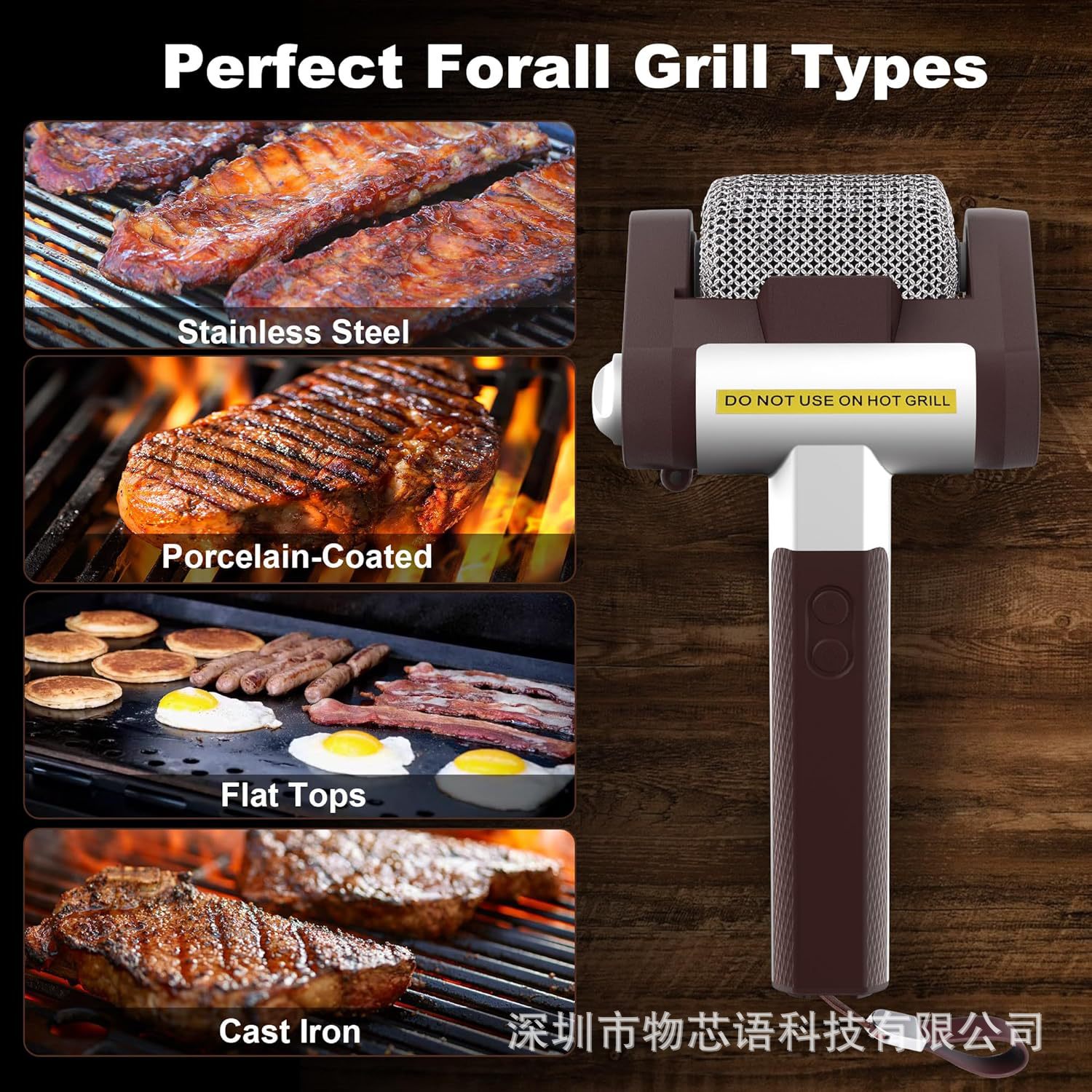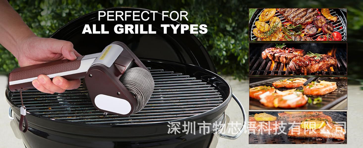 야외 바베큐 그릴용 LED 조명 전동 청소 브러쉬, 스테인리스 롤러, 손 화상 방지, 도매