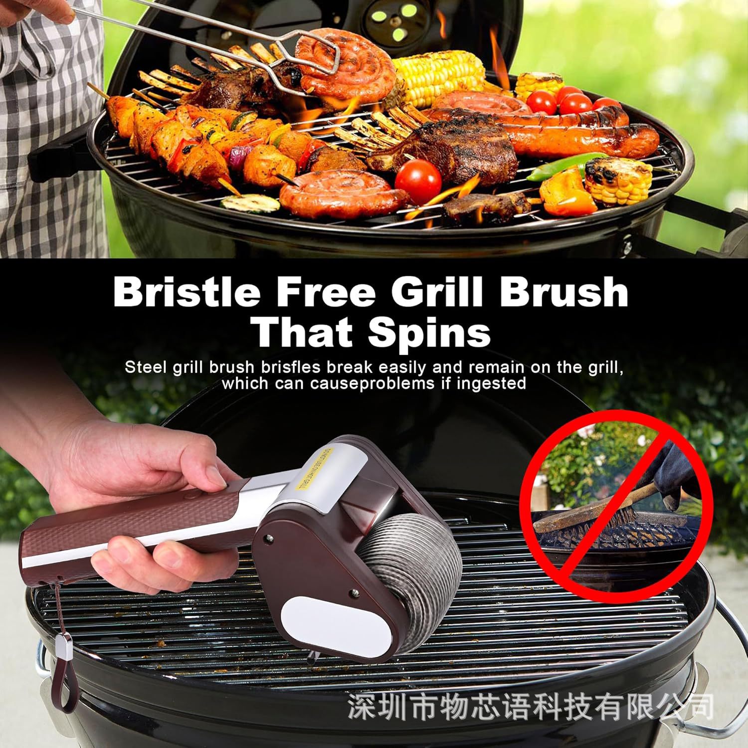 야외 바베큐 그릴용 LED 조명 전동 청소 브러쉬, 스테인리스 롤러, 손 화상 방지, 도매스토어 가기