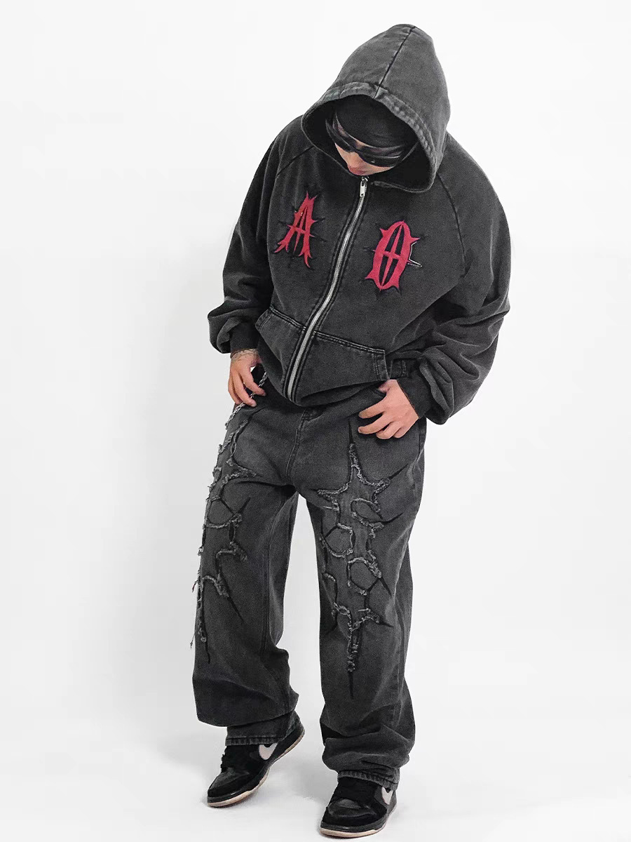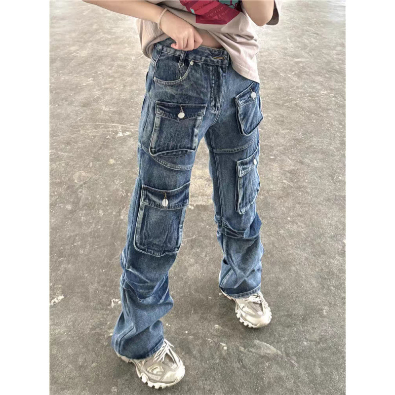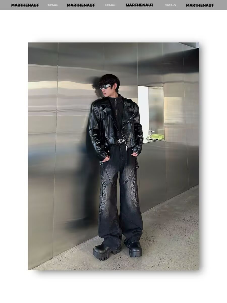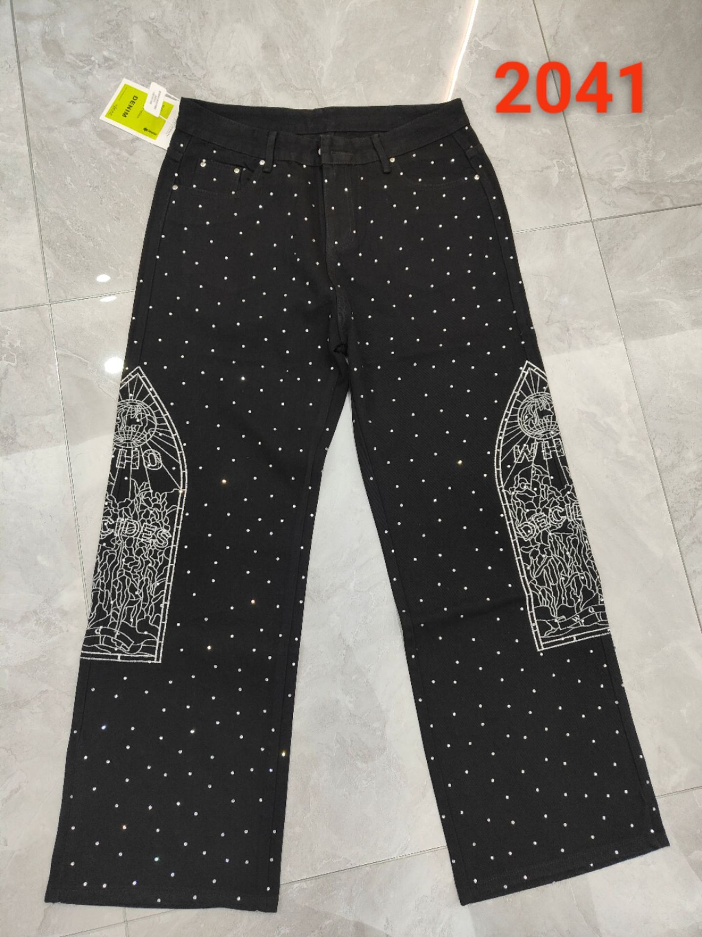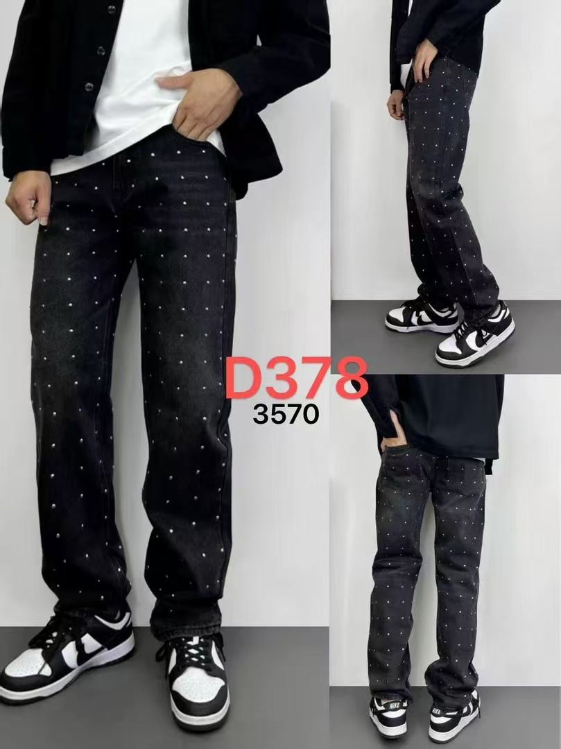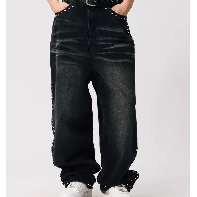 跨境欧美高街vibe裤子牛仔裤美式直筒拼接泼墨微喇长裤男一件代发