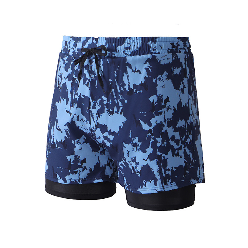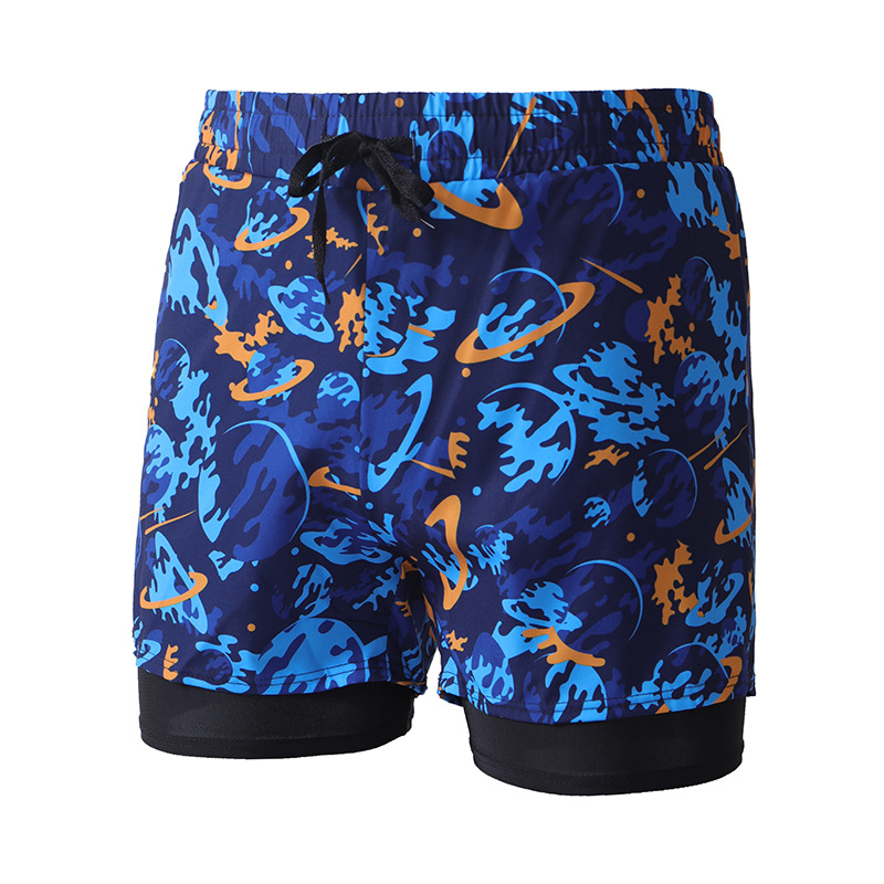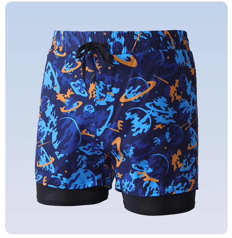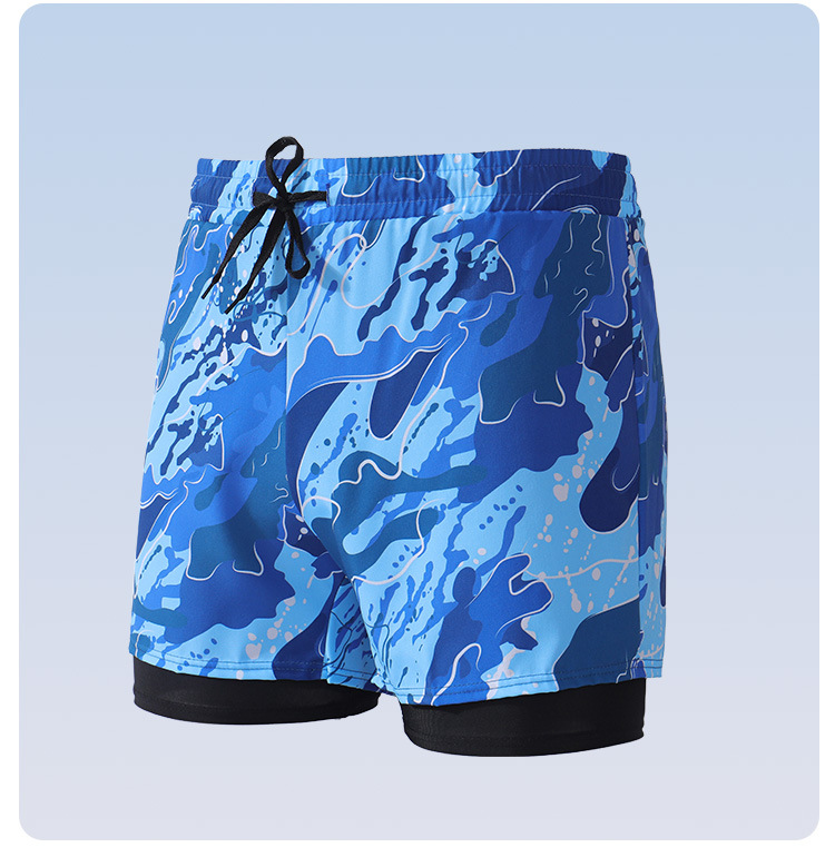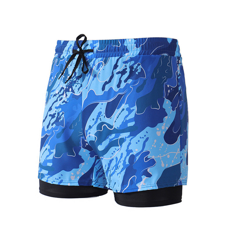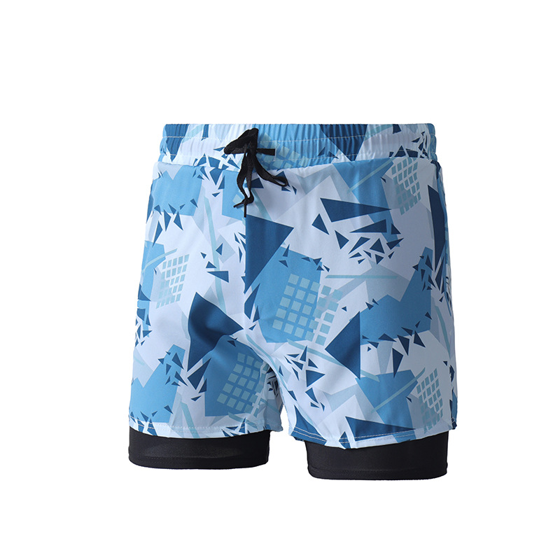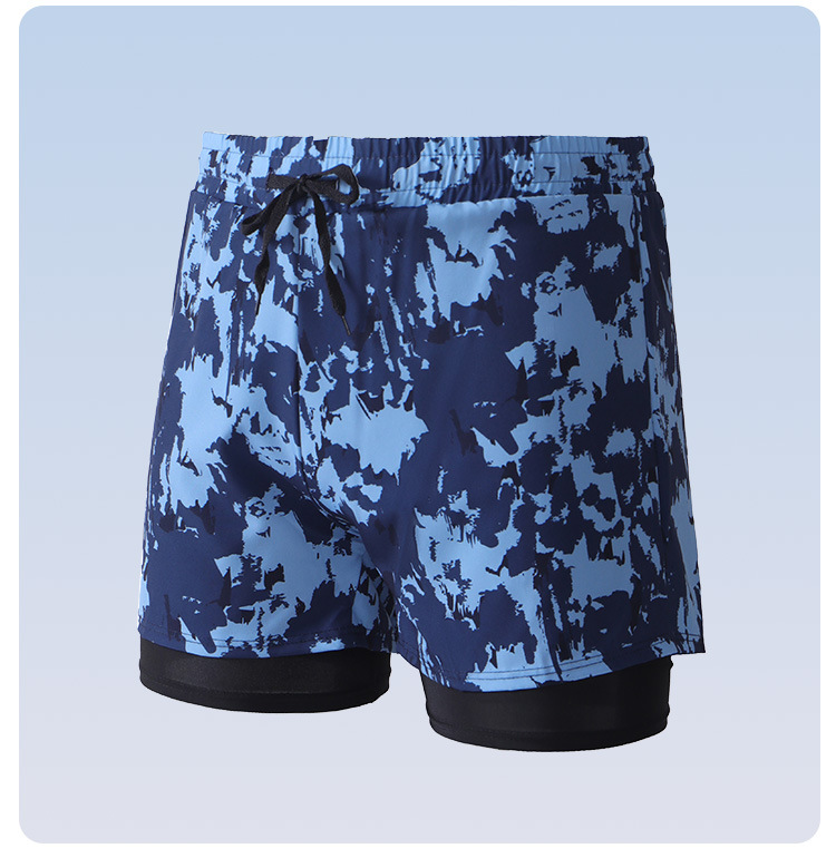 국경을 넘는 인기 수영복, 이중 레이어로 당황 방지, 속건성 러닝 및 피트니스 스포츠용 남성 수영복, 루즈핏 비치 팬츠