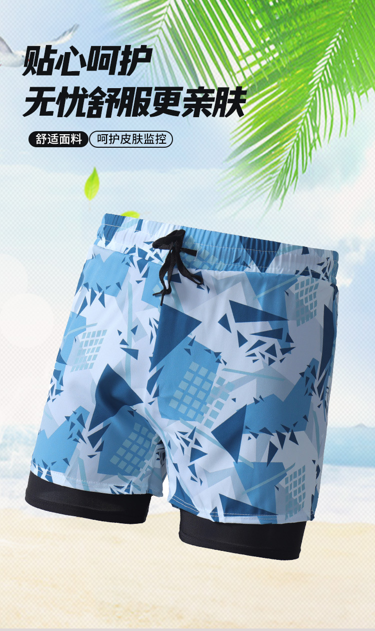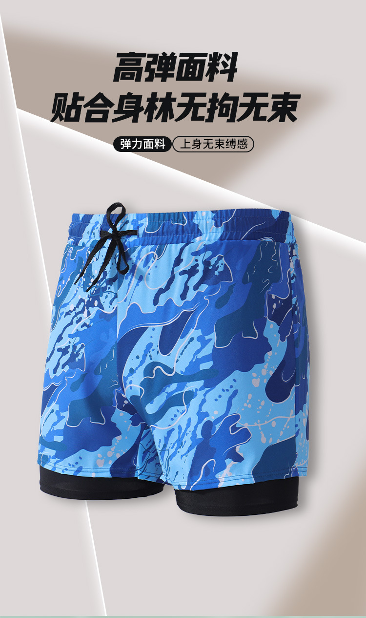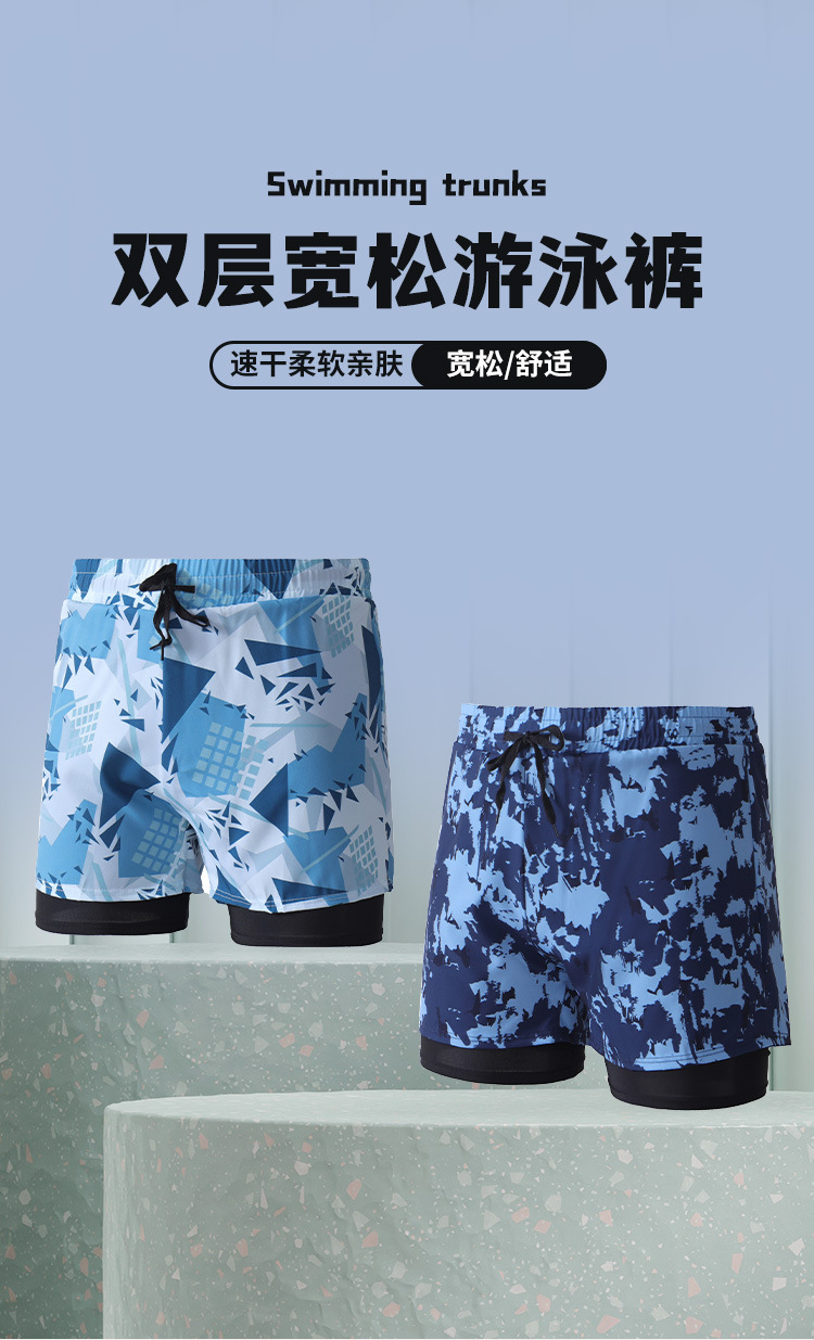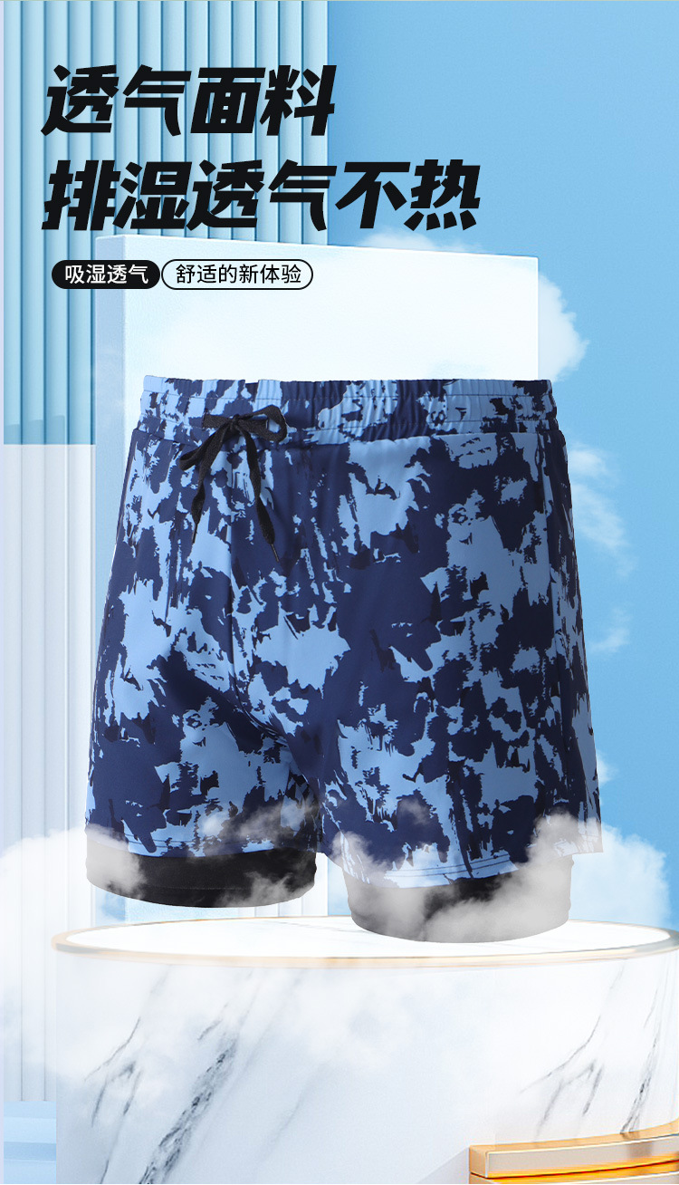 국경을 넘는 인기 수영복, 이중 레이어로 당황 방지, 속건성 러닝 및 피트니스 스포츠용 남성 수영복, 루즈핏 비치 팬츠