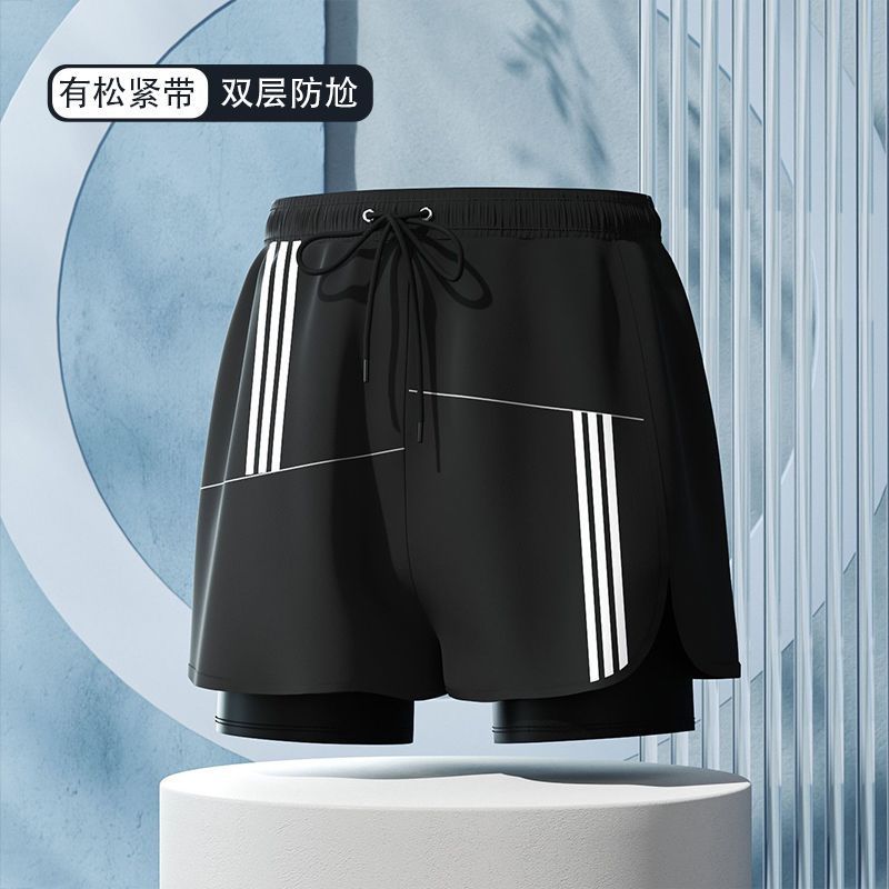 국경을 넘는 인기 수영복, 이중 레이어로 당황 방지, 속건성 러닝 및 피트니스 스포츠용 남성 수영복, 루즈핏 비치 팬츠스토어 가기