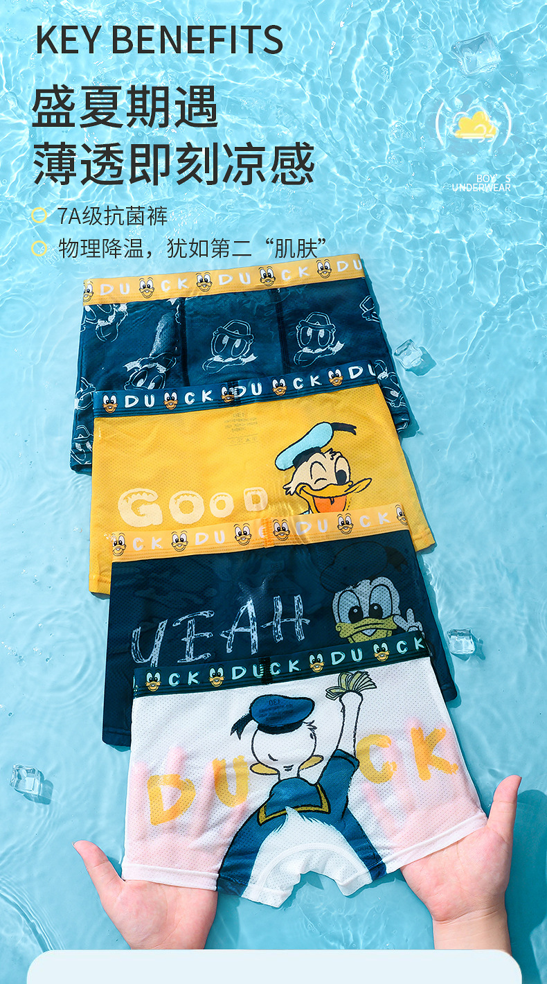 얇은 아이스 실크 메쉬 소재 남아용 팬티 통기성 좋은 사각팬티 중대형 어린이용 아동용 A급 안전