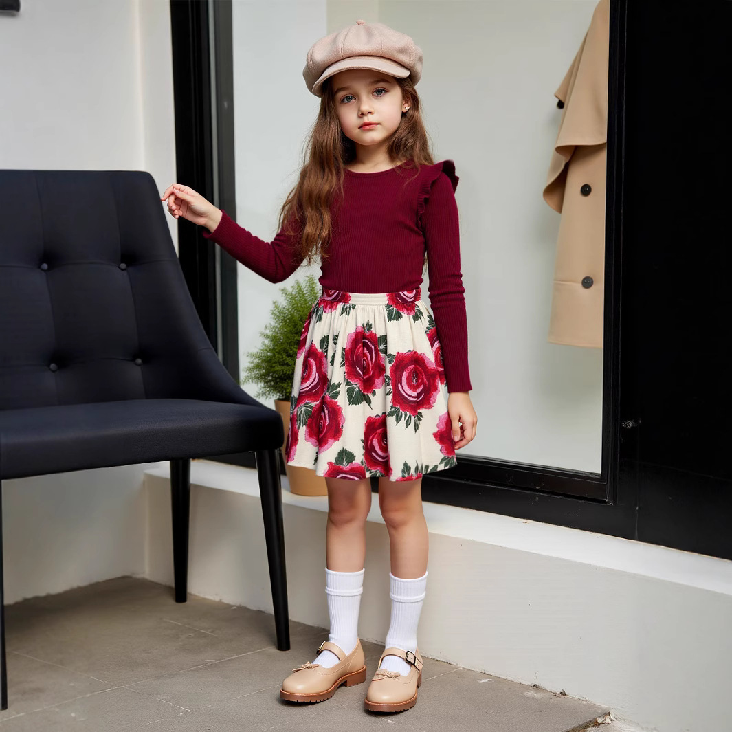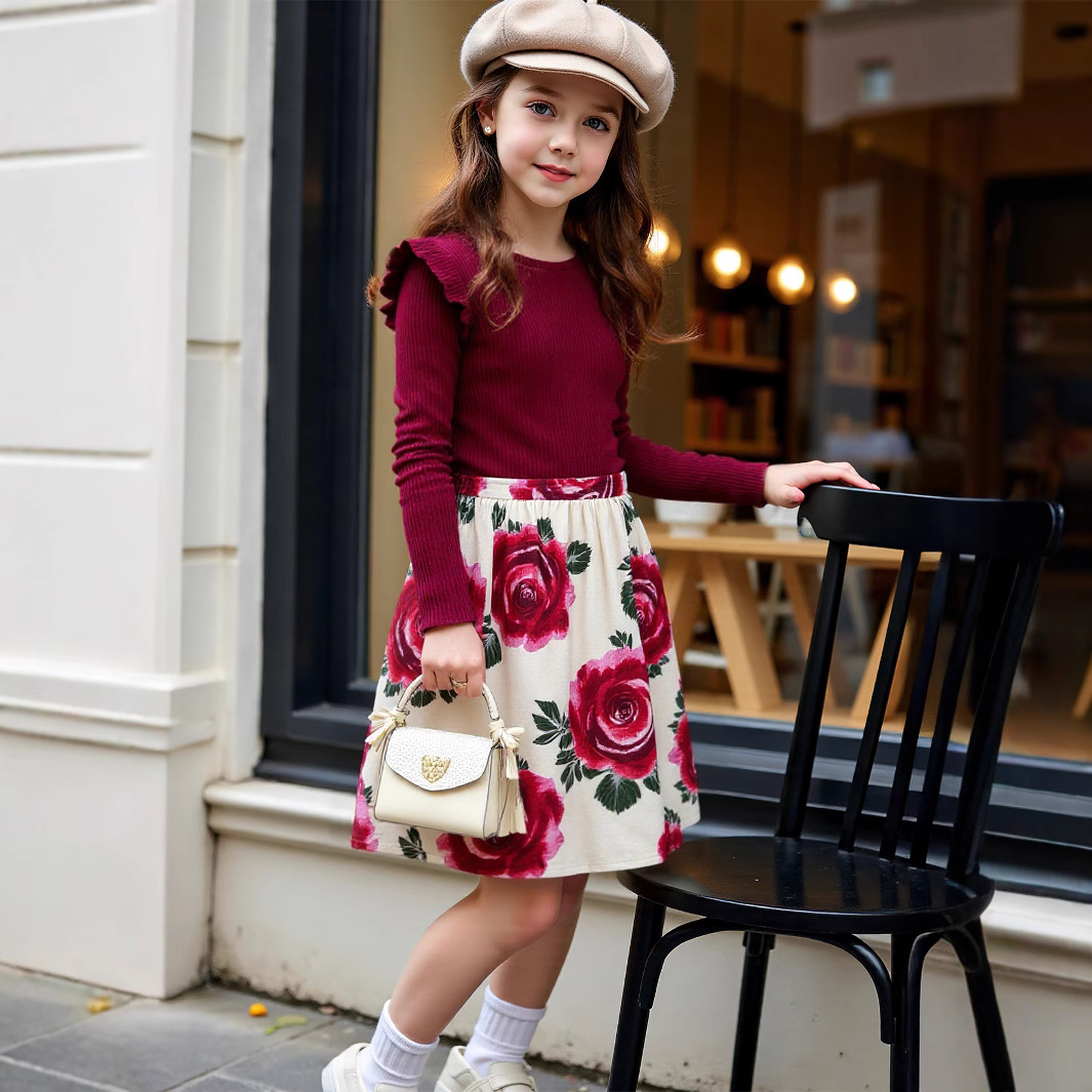 XD10017 국경 간 무역 2025 여자 스커트 여름 핏 탑 + 복고풍 꽃 무늬 스커트