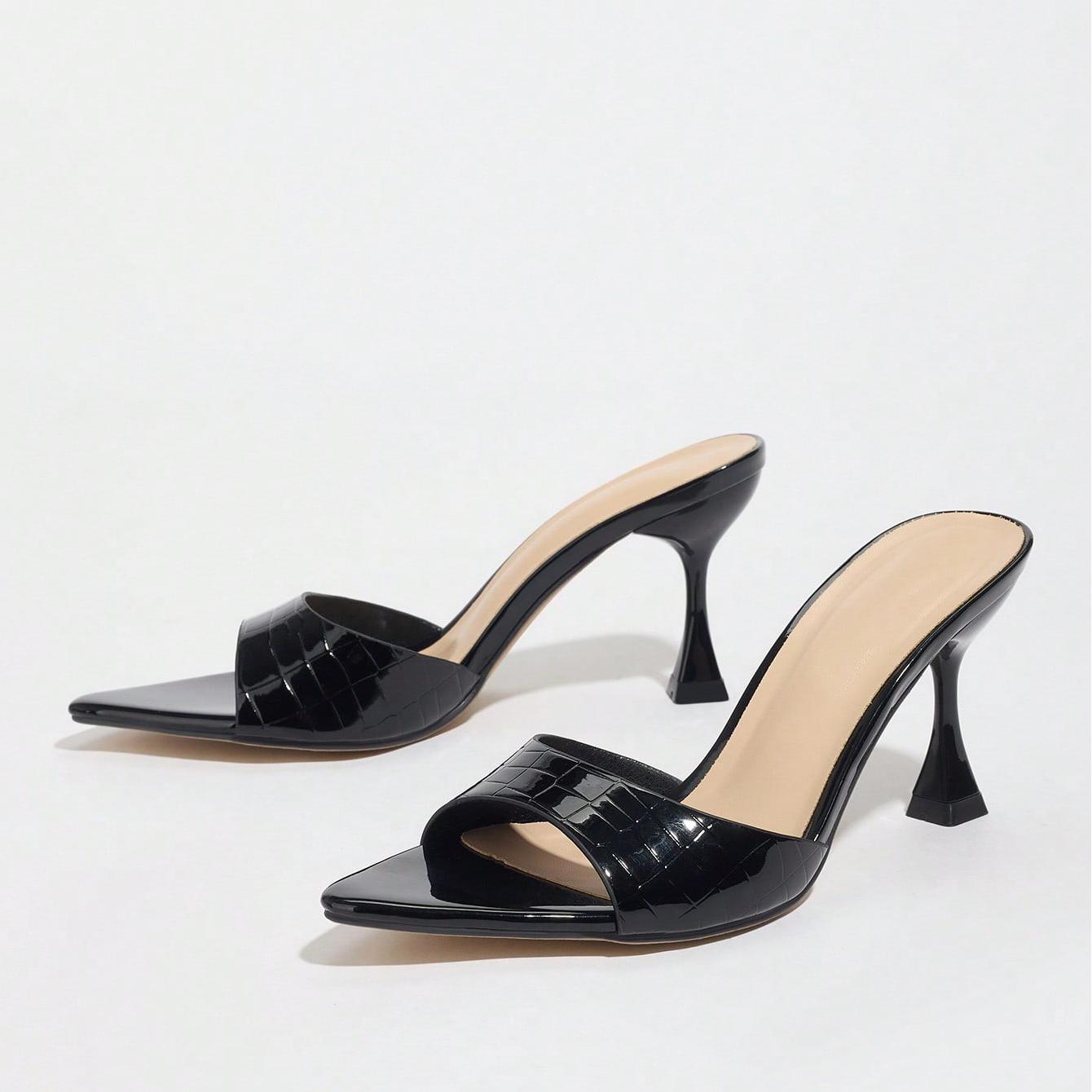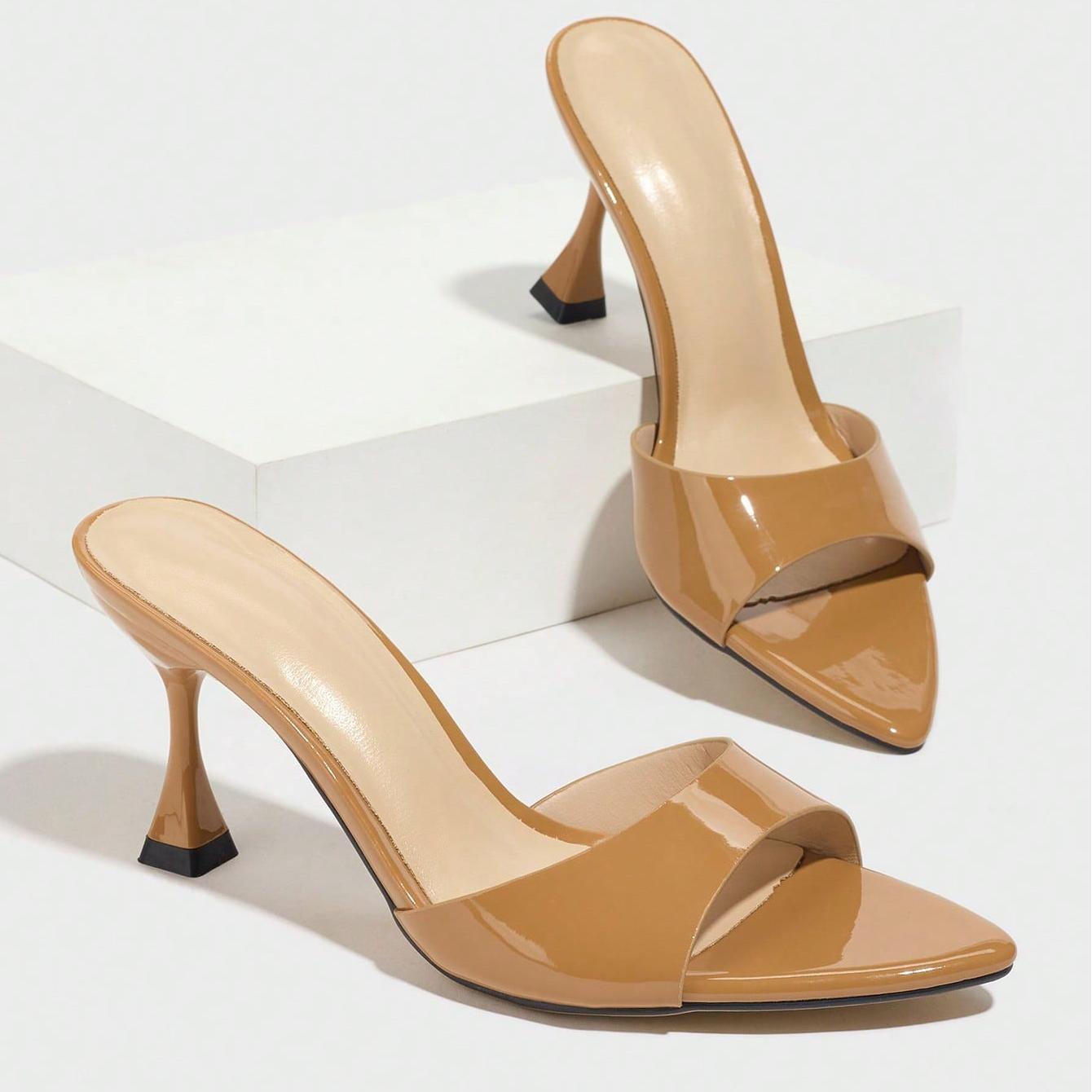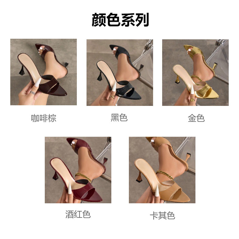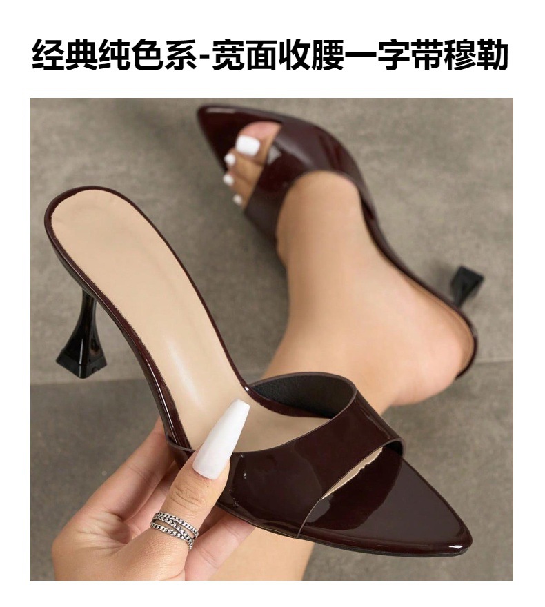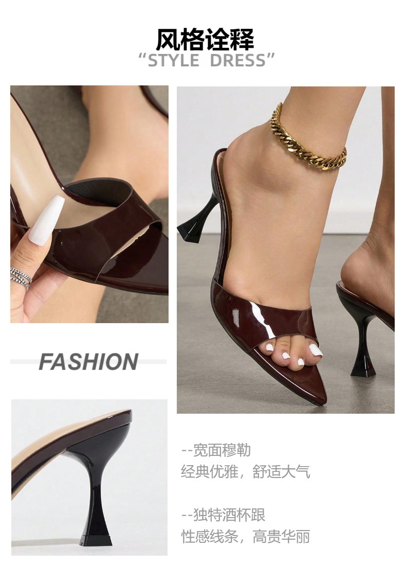 국경 간 대외 무역 여성용 하이힐 샌들 클래식 와이드 스트랩 뮬 와인 글라스 힐 우아한 하이힐 슬리퍼