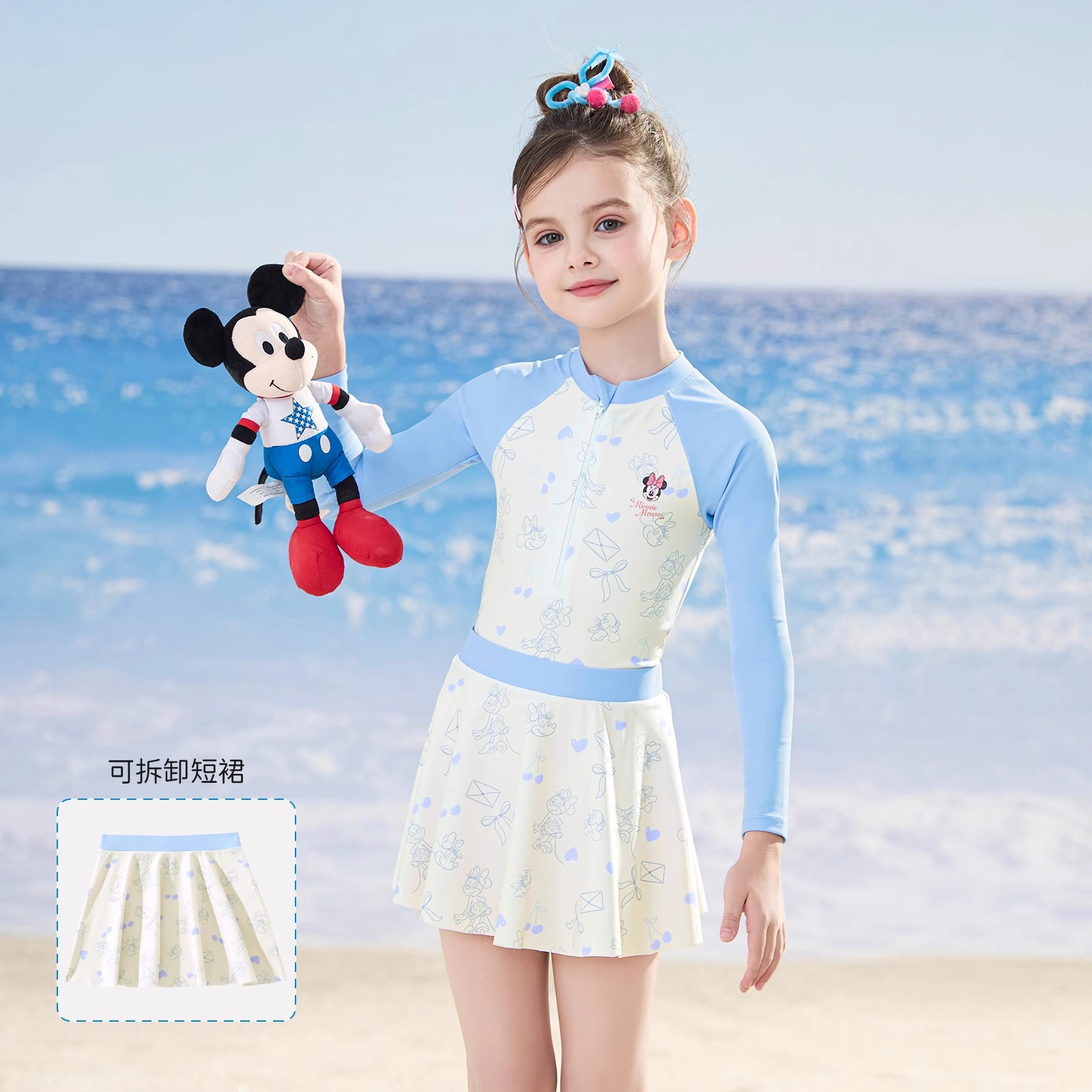 디즈니 어린이 수영복 소녀 원피스 긴팔 2025 새로운 자외선 차단제 속건성 소형, 중형 및 대형 어린이 소녀 수영복스토어 가기