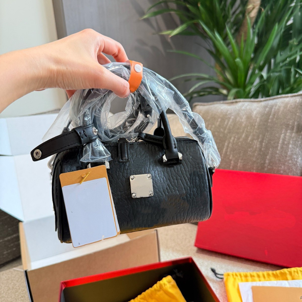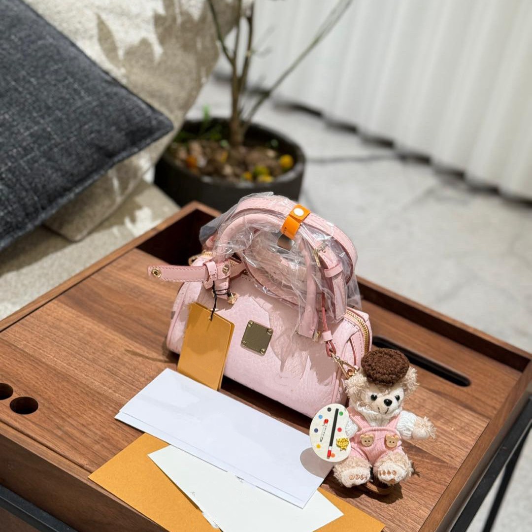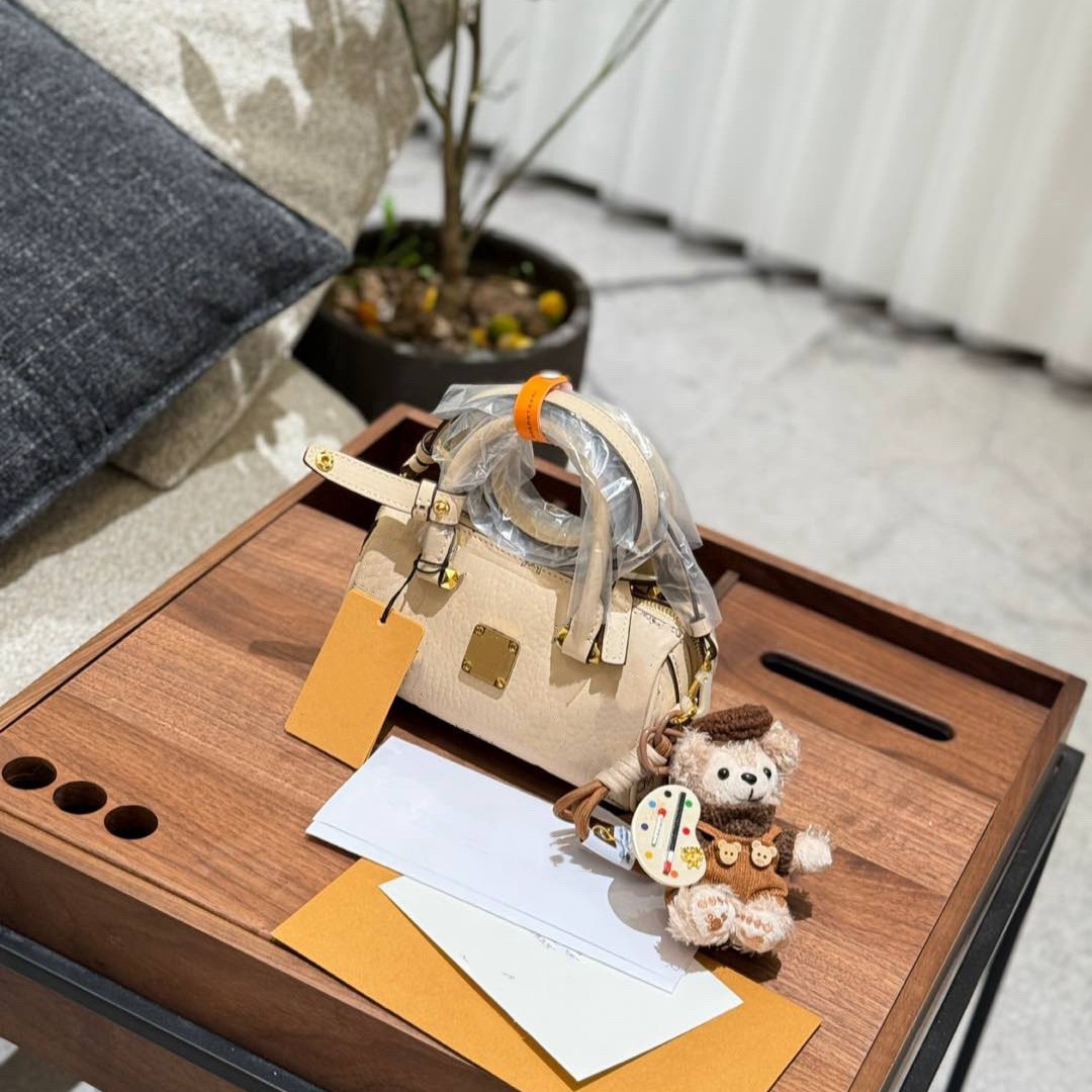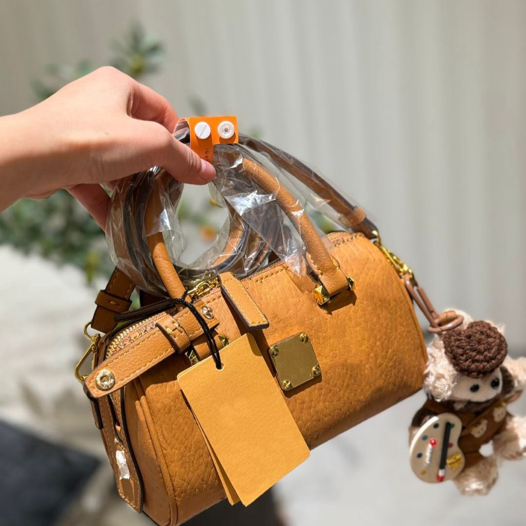 로고 M 베개 가방 C 보스턴 M 숄더 크로스 바디 핸드 헬드 실린더 백 여성용 정품 가죽 가방스토어 가기
