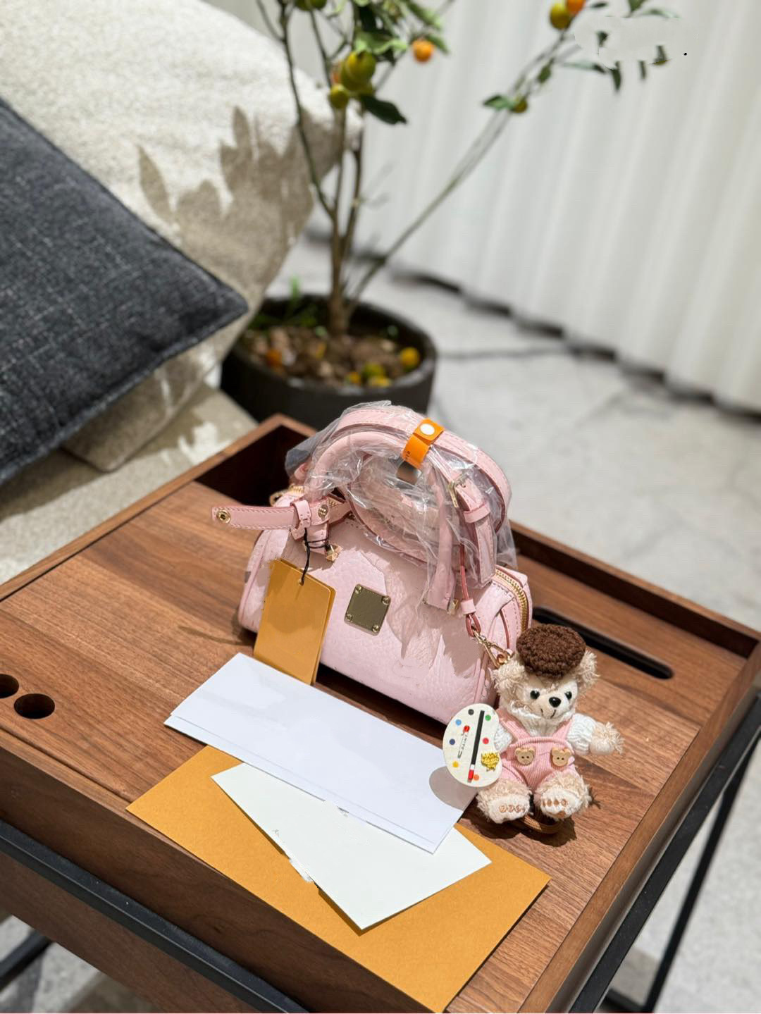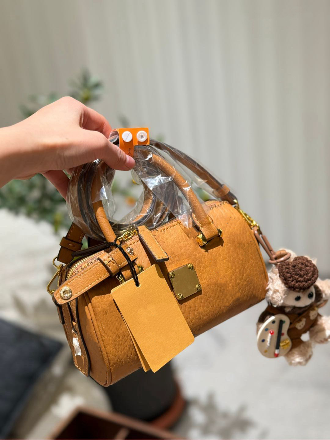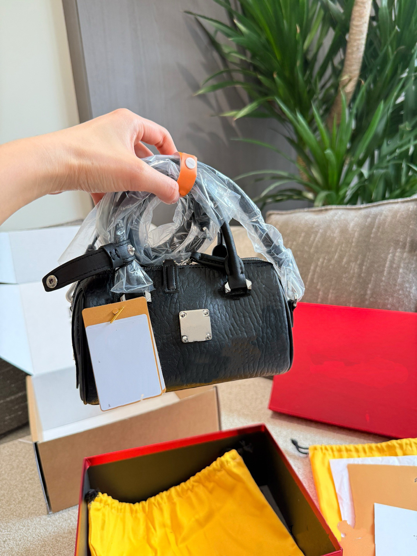 로고 M 베개 가방 C 보스턴 M 숄더 크로스 바디 핸드 헬드 실린더 백 여성용 정품 가죽 가방스토어 가기