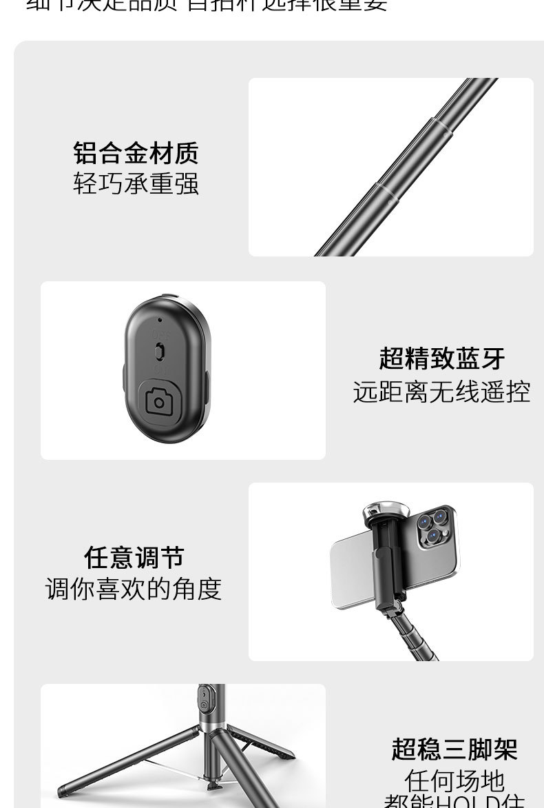 DP08 Doudou Rod 1.7m 휴대 전화 셀카 스틱 블루투스 사진 여행 휴대용 바닥 텔레스코픽 라이브 스트리밍 삼각대스토어 가기