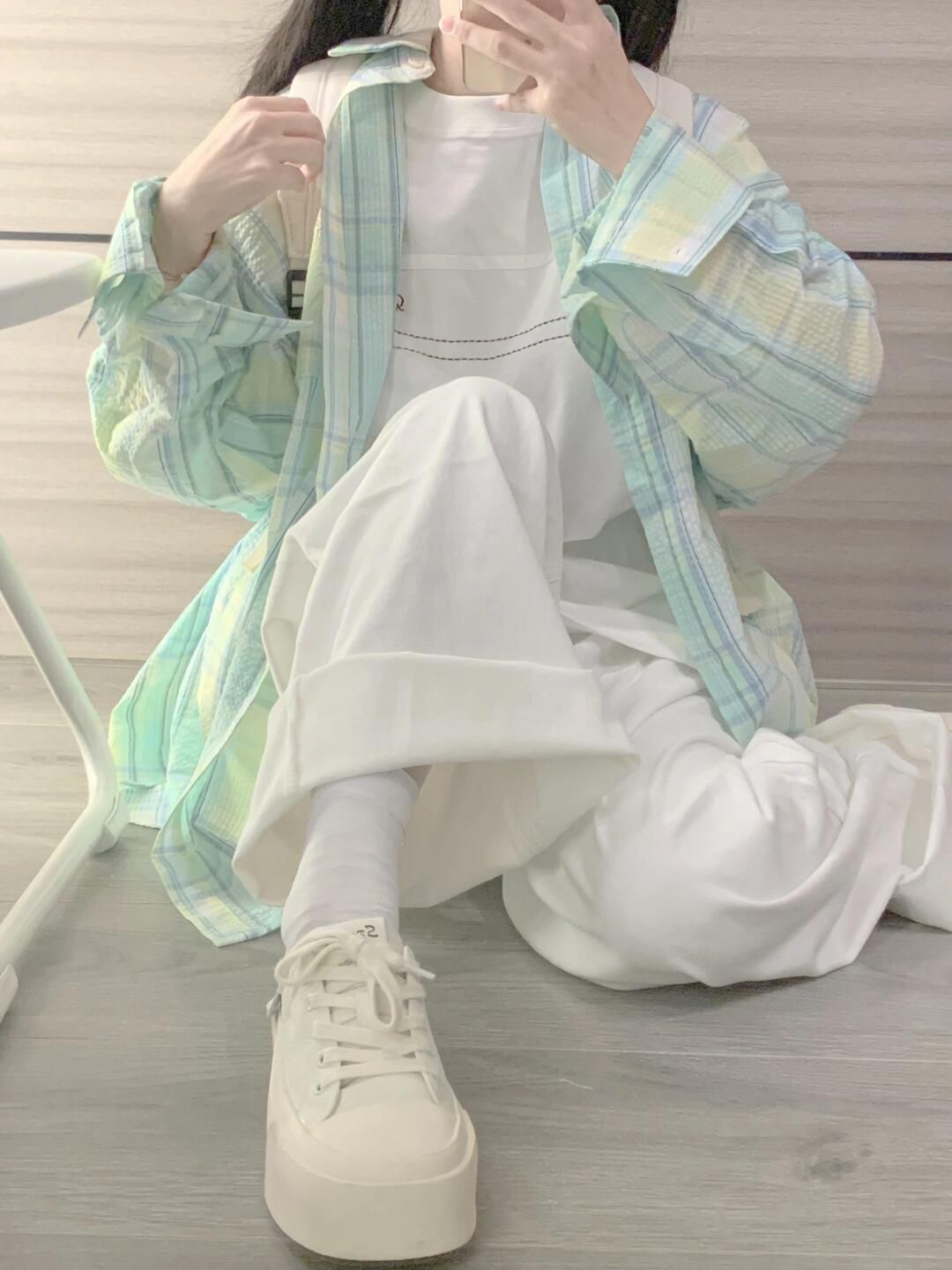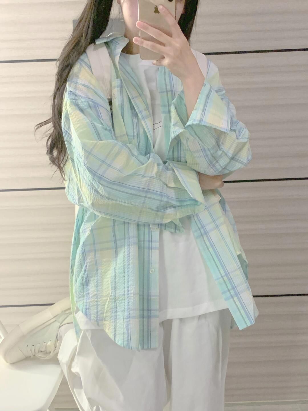 여성용 맨보 스타일 민트 그린 체크 무늬 셔츠 재킷 봄, 가을 얇은 작은 느슨한 세련된 자외선 차단제 셔츠 카디건스토어 가기