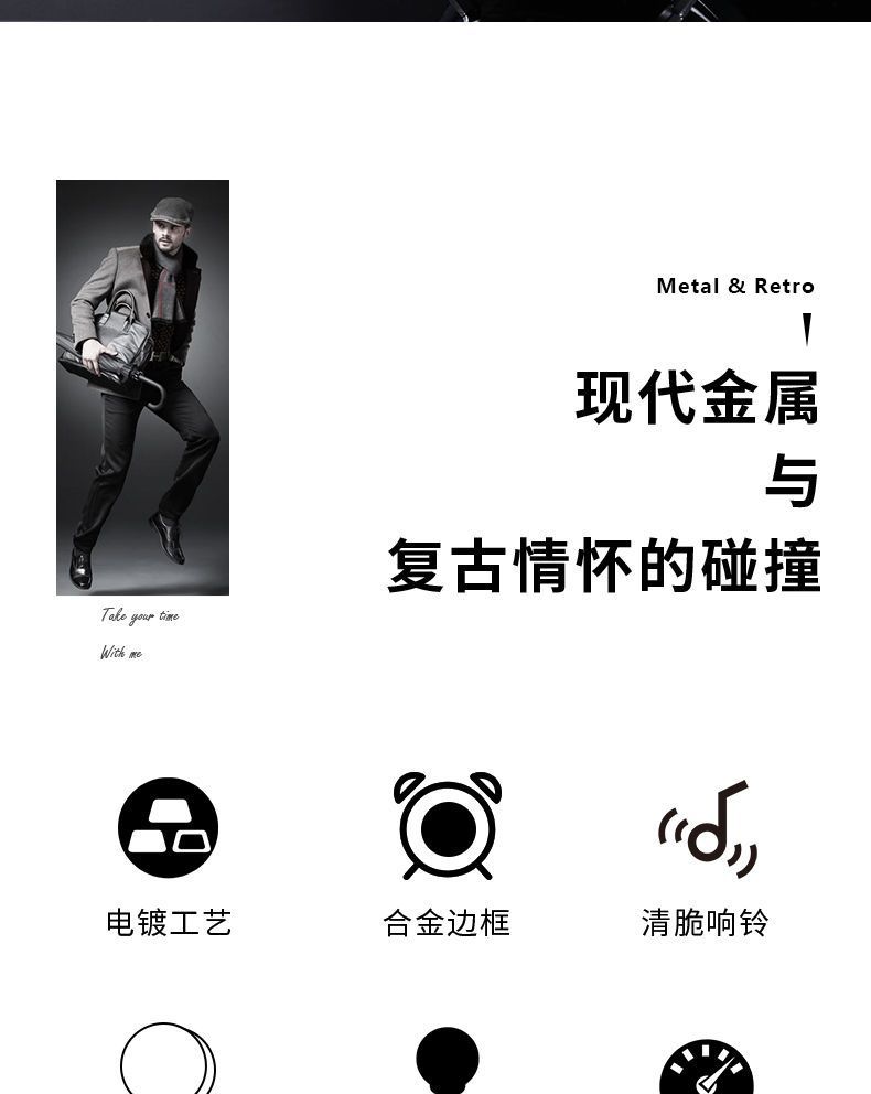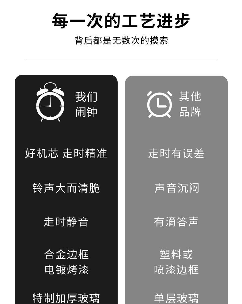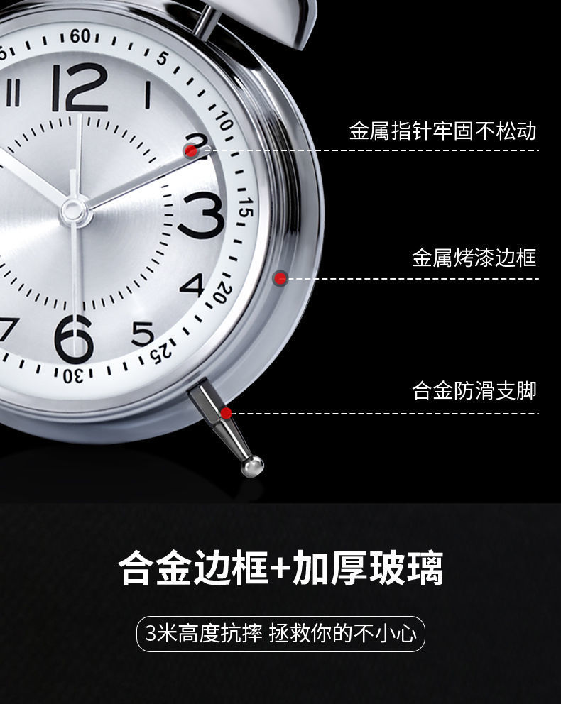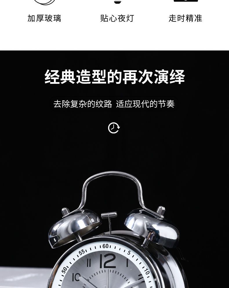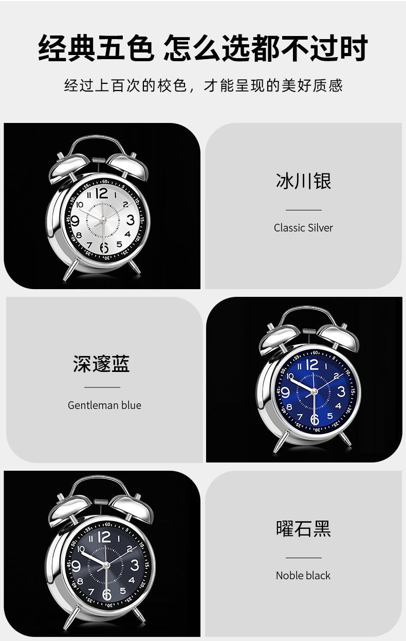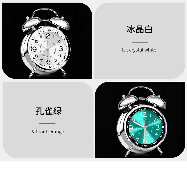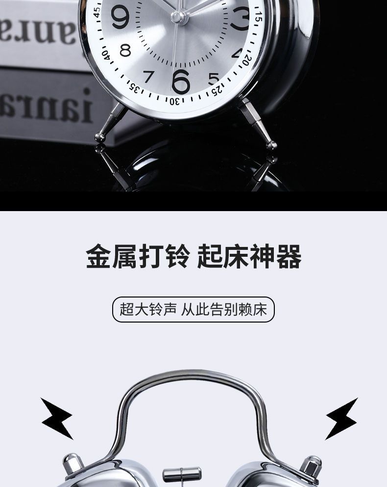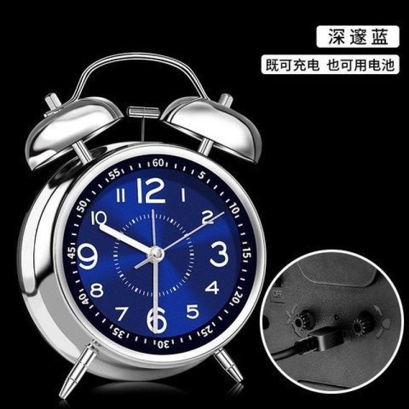 학생 기숙사 어린이를 위한 사운드 메탈 벨 알람 시계, 야간 조명, 조용한 시간, 기상 알람, 충전식, Zhaozhizheng스토어 가기