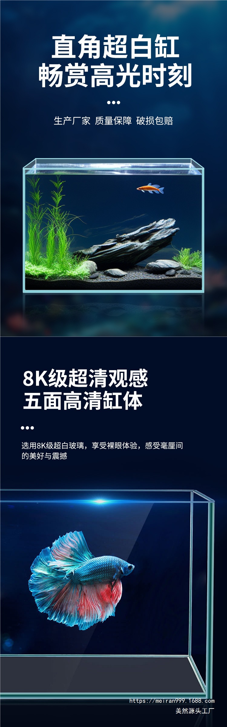 금색 초백색 직각 유리 수조 가정용 데스크탑 스트림 생태 수생 식물 수조 조경 금붕어 거북이 수조 도매스토어 가기