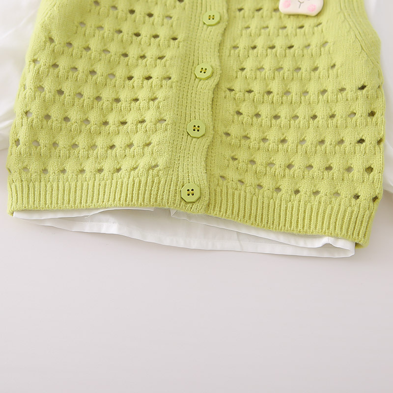 • 자수 칼라 스웨터 조끼 3종 세트 그린