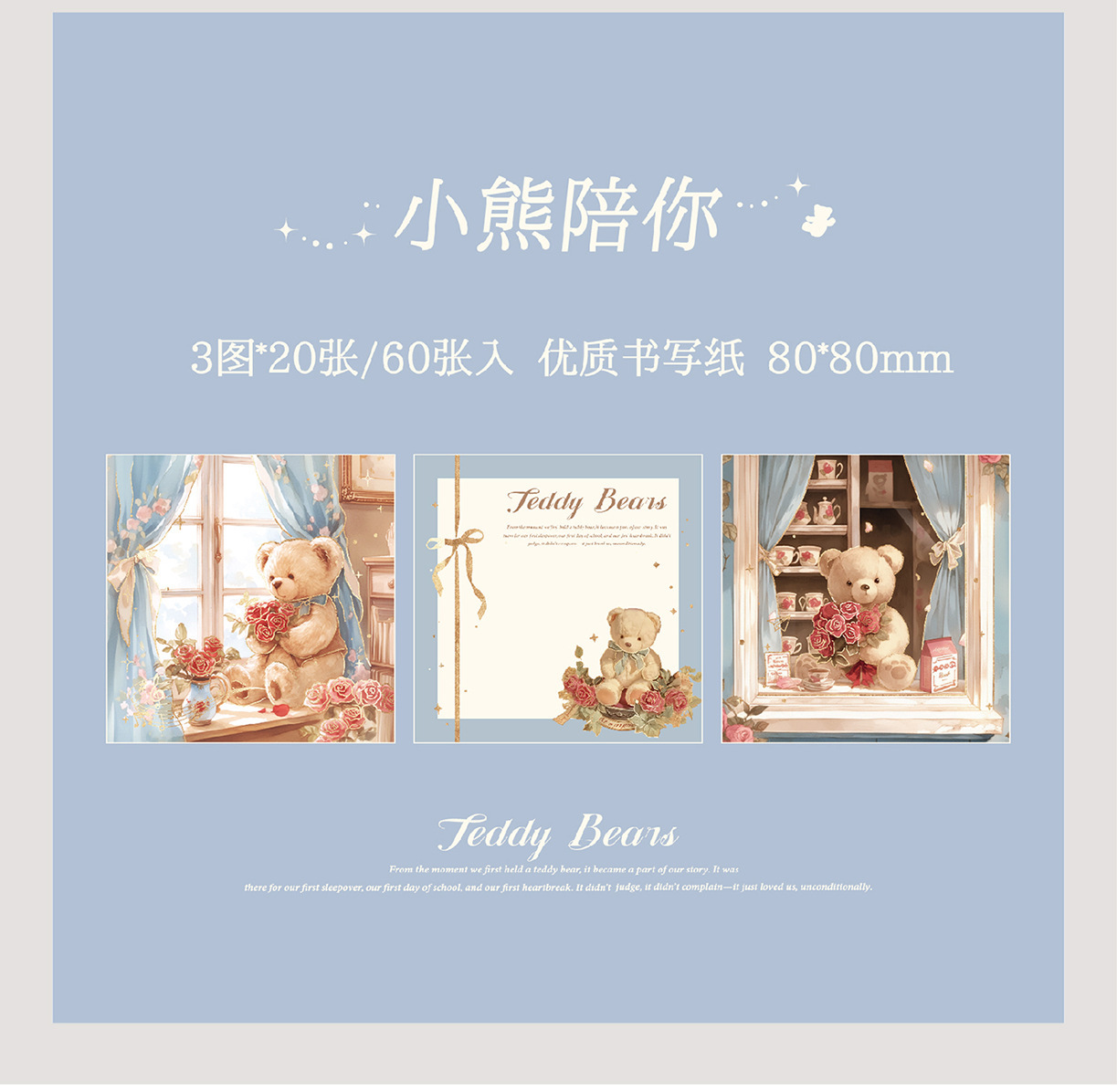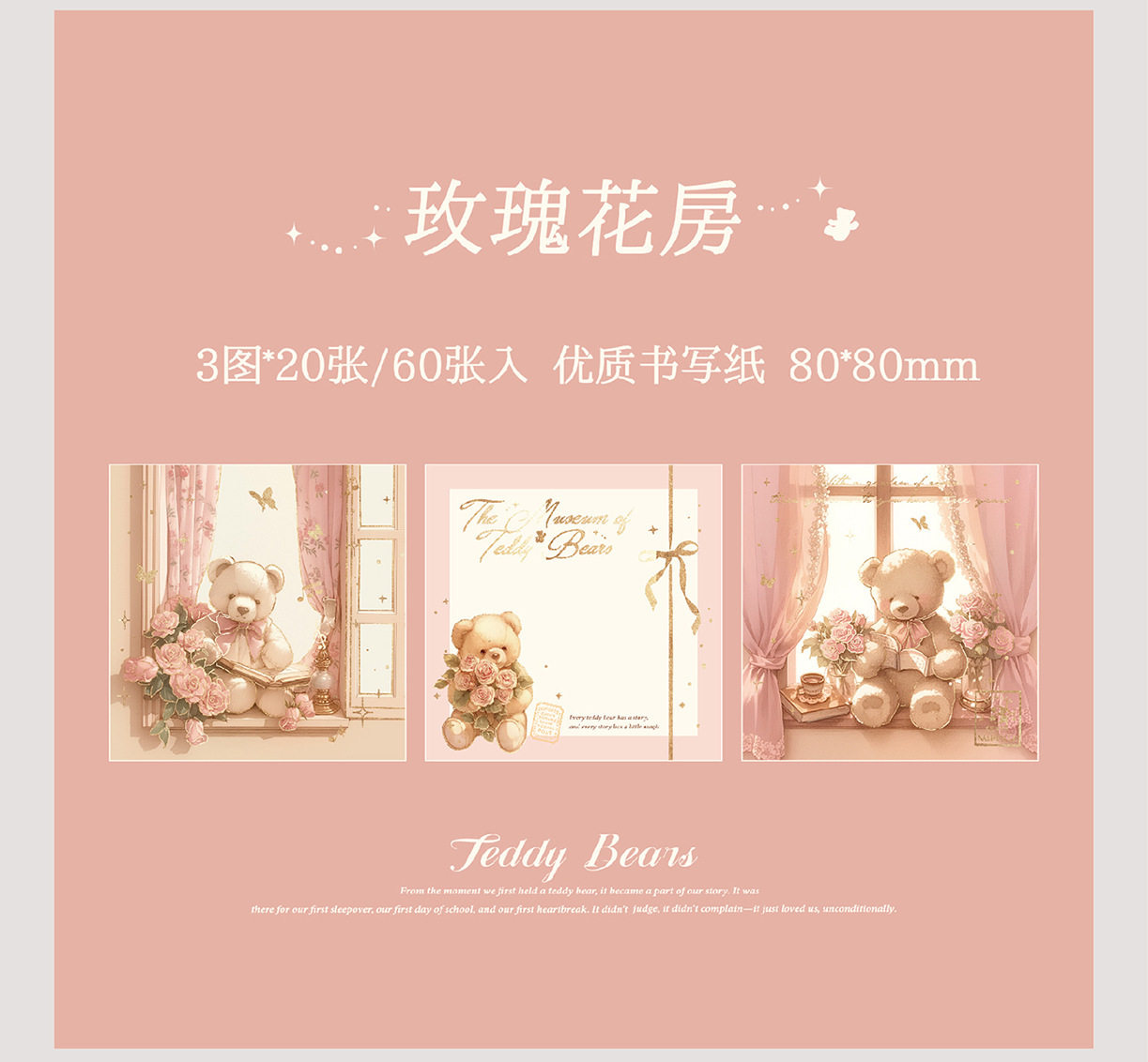 Mr. Paper 풀 핫 스탬핑 3팩 노트 베어 로맨틱 하우스 귀여운 로맨틱 테마 학생 메모 메모스토어 가기
