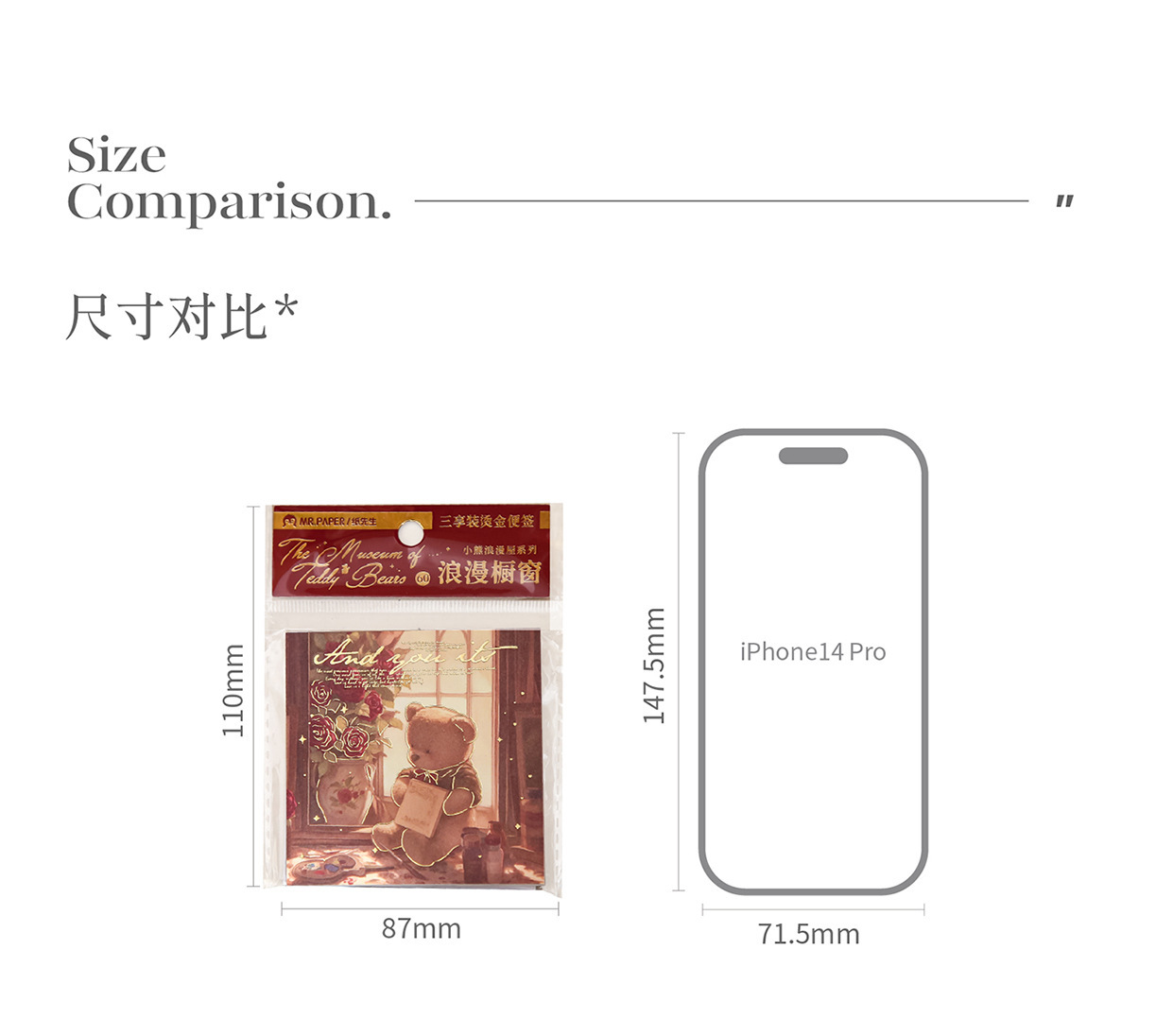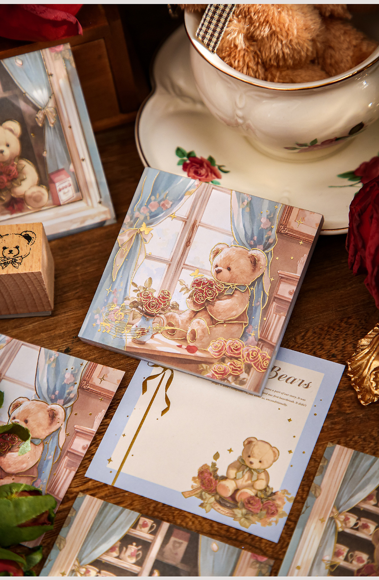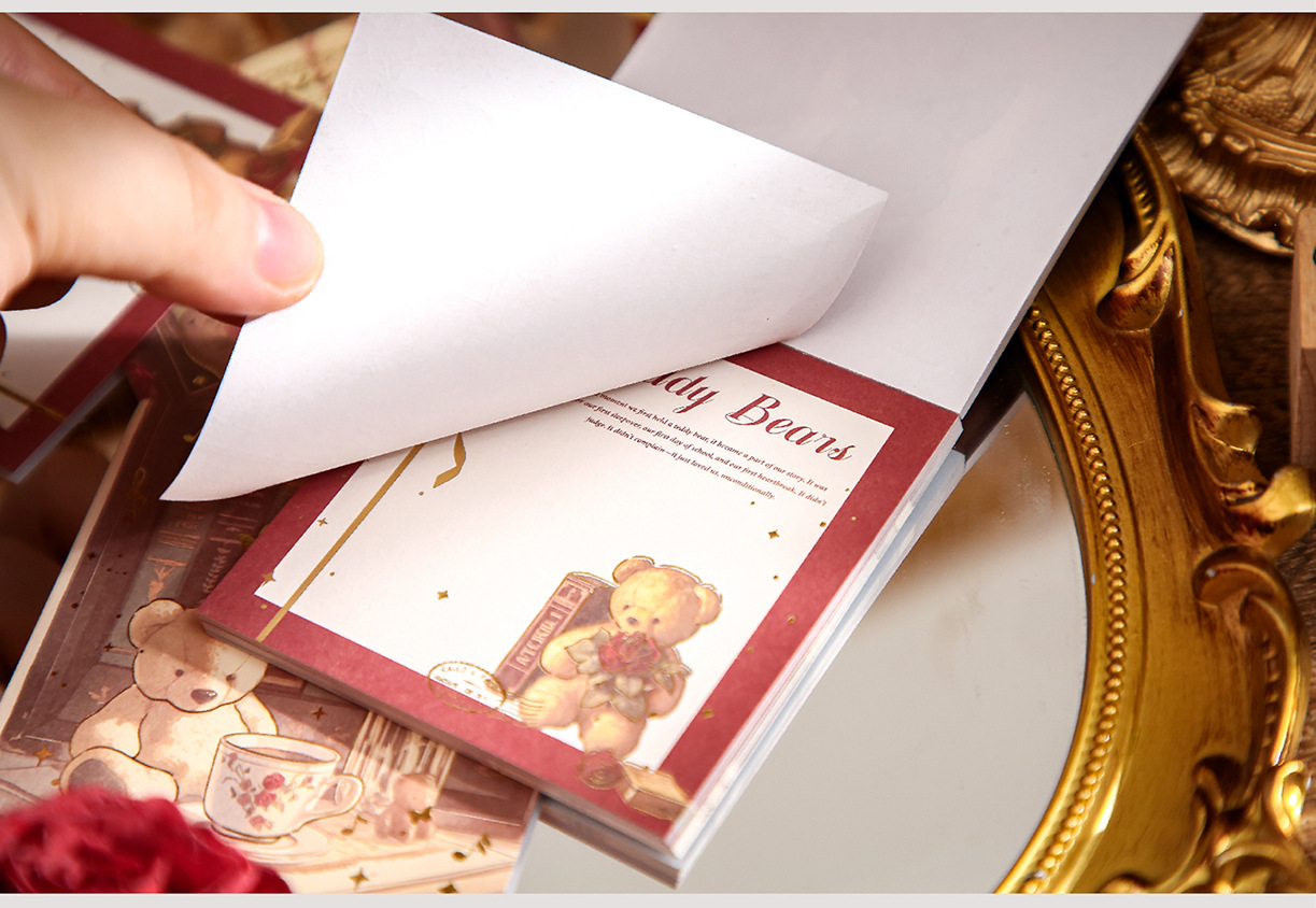 Mr. Paper 풀 핫 스탬핑 3팩 노트 베어 로맨틱 하우스 귀여운 로맨틱 테마 학생 메모 메모