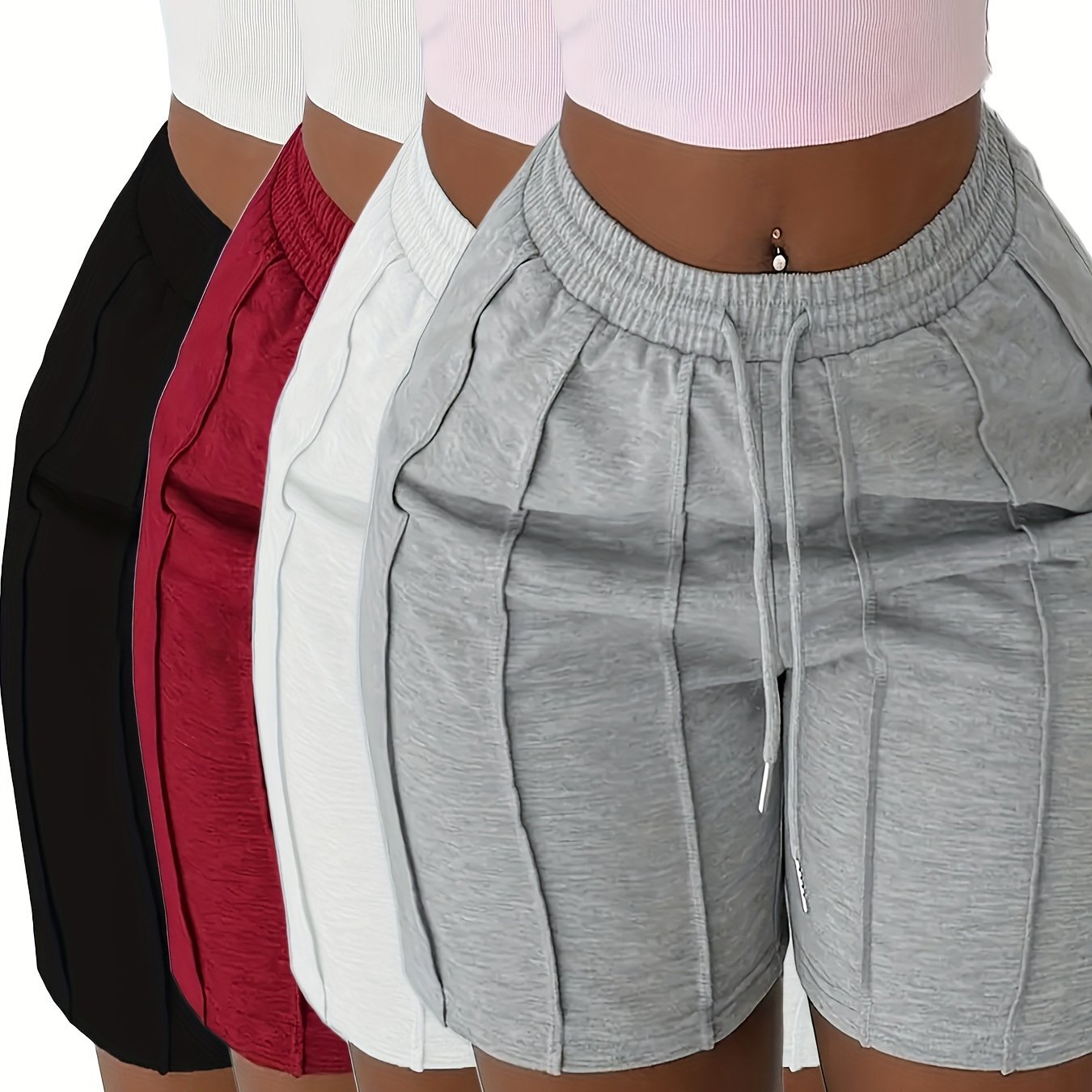 2025년 새로운 유럽 및 미국 여성용 단색 신축성 있는 드로스트링 반바지 4팩 크로스보더 배송스토어 가기