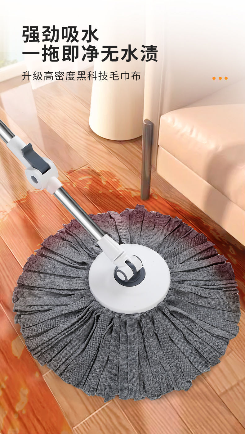 회전식 범용 대형 교체 가정용 걸레 헤드, 손세탁이 필요 없는 걸레, 두꺼운 흡수성 원형 걸레 헤드