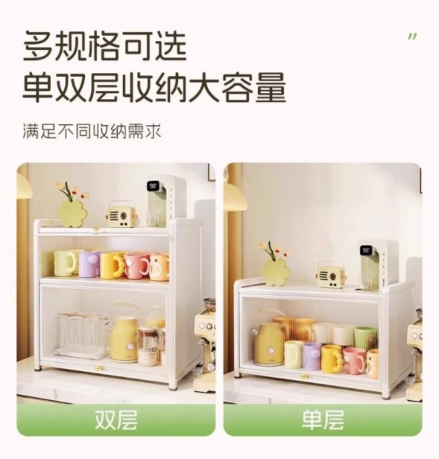 도어가있는 다층 컵 보관함 방진 컵 홀더 조리대 물 컵 병 보관 캐비닛 데스크탑 보관함스토어 가기