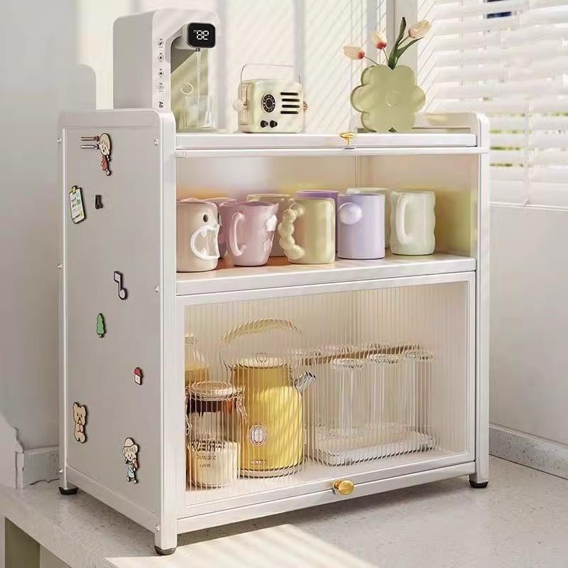 도어가있는 다층 컵 보관함 방진 컵 홀더 조리대 물 컵 병 보관 캐비닛 데스크탑 보관함