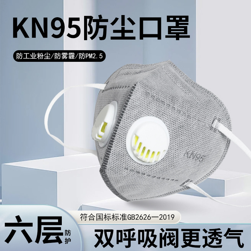KN95 산업용 마스크, 활성탄이 함유된 안티 스모그 이중 호흡 밸브, 두꺼운 6층 필터, 중먼지 작업장 마스크