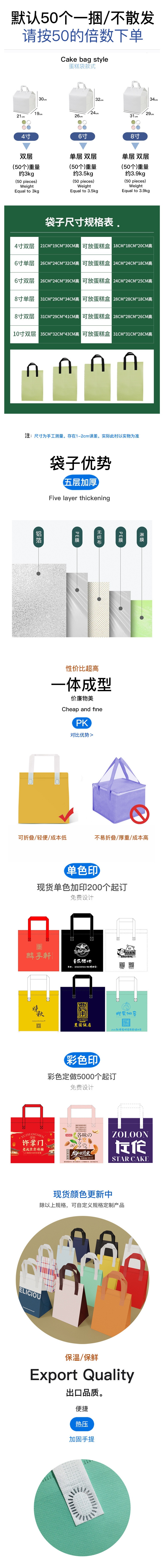 4인치 6인치 8inch 10inch 단층 및 이중층 케이크 단열 가방 휴대용 높이 냉각 가방 두꺼운 바베큐 전골 가방스토어 가기