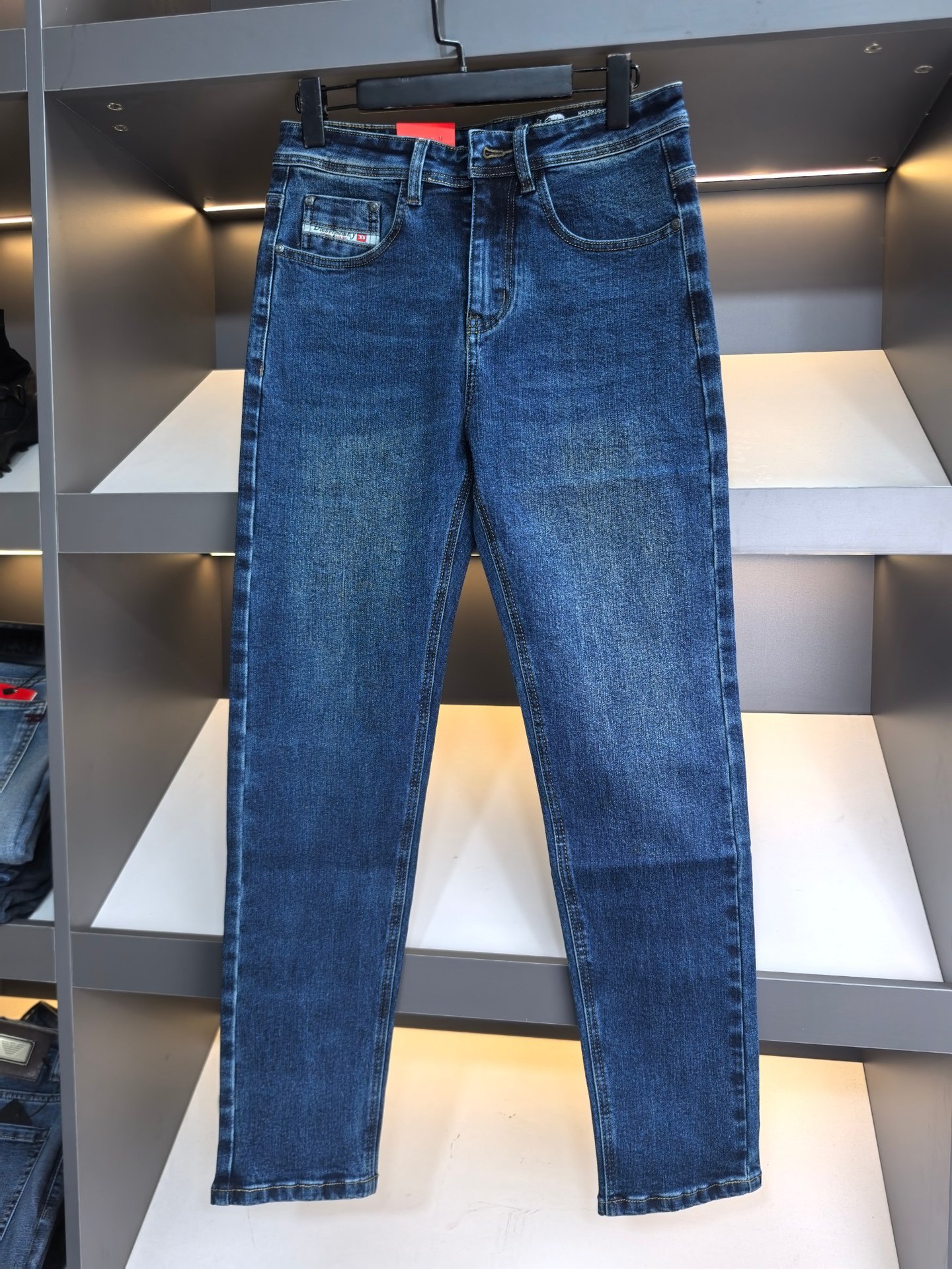 DS 자수 하이 엔드 유럽 남성 청바지 진한 파란색 사계절 향수 스트레치 워시 슬림 스몰 스트레이트 남성 바지스토어 가기