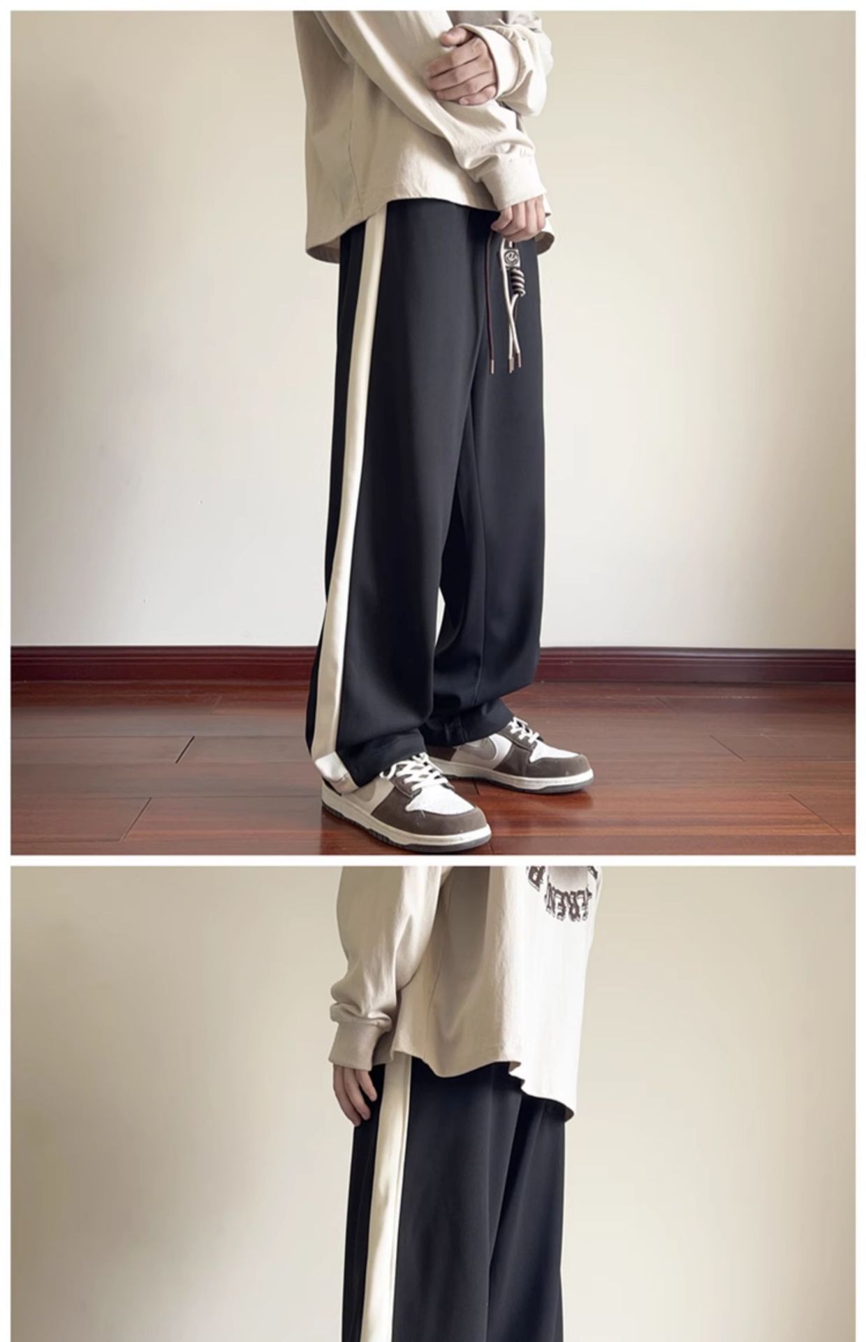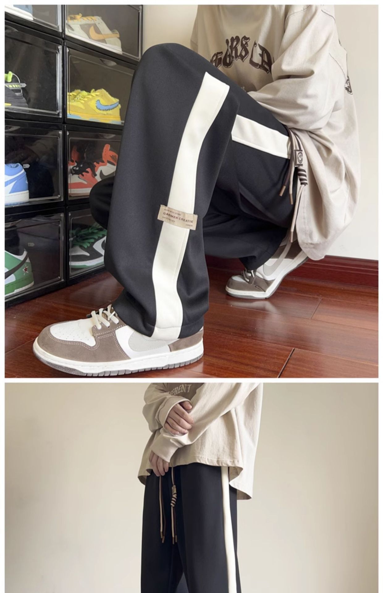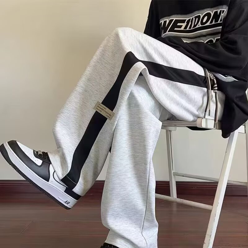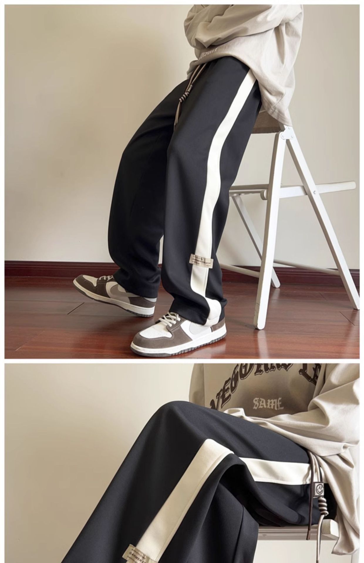 여름 드레이프 스트레이트 얇은 시즌 청소년 스포츠 바지 컬러 블록 스웨트 팬츠 남성 트렌디 루즈 레이지 릴렉스 팬츠