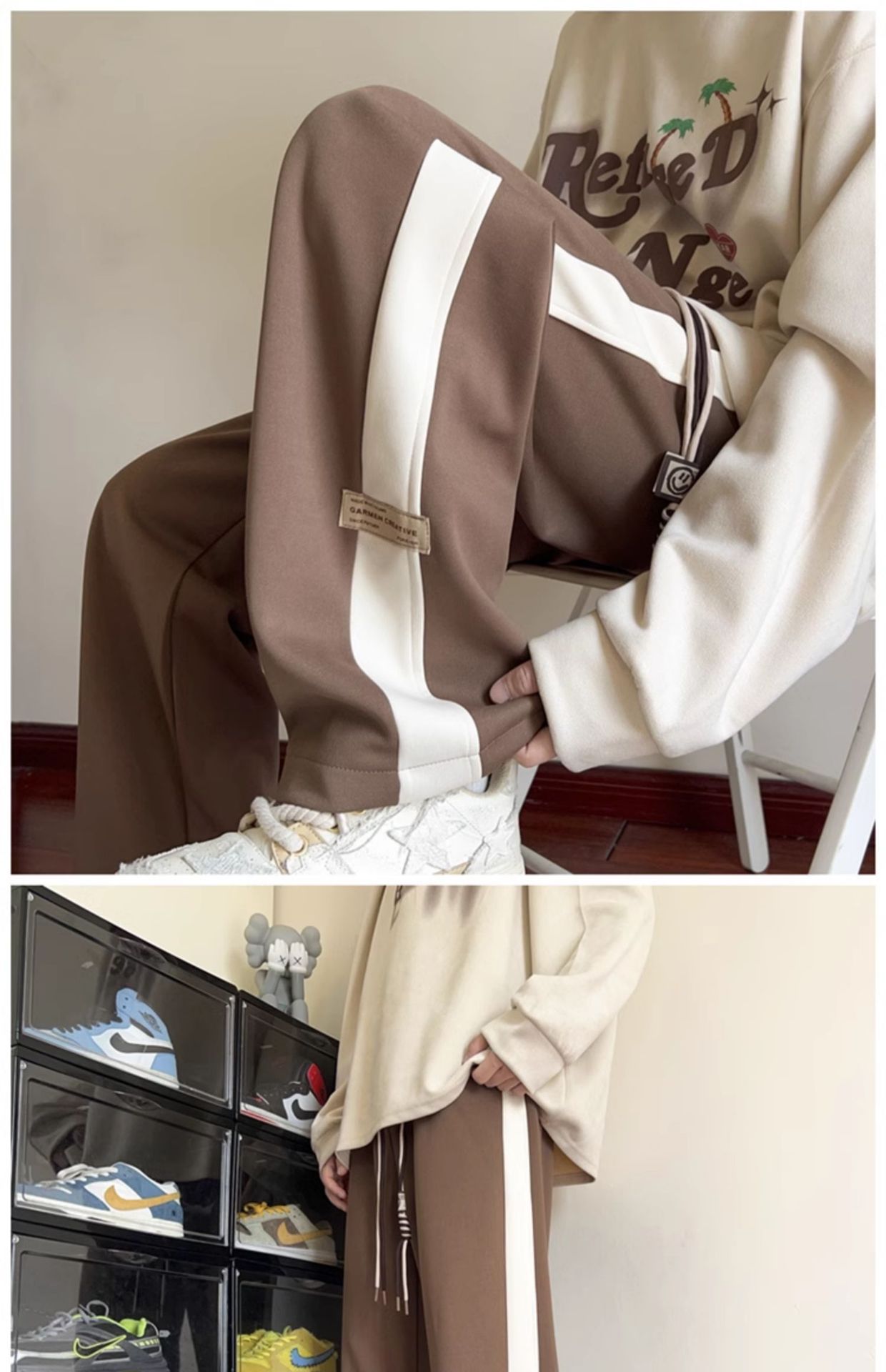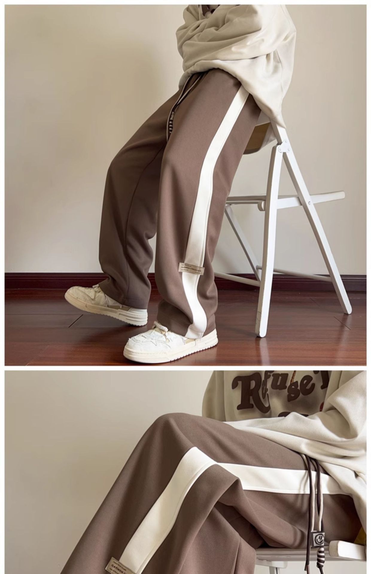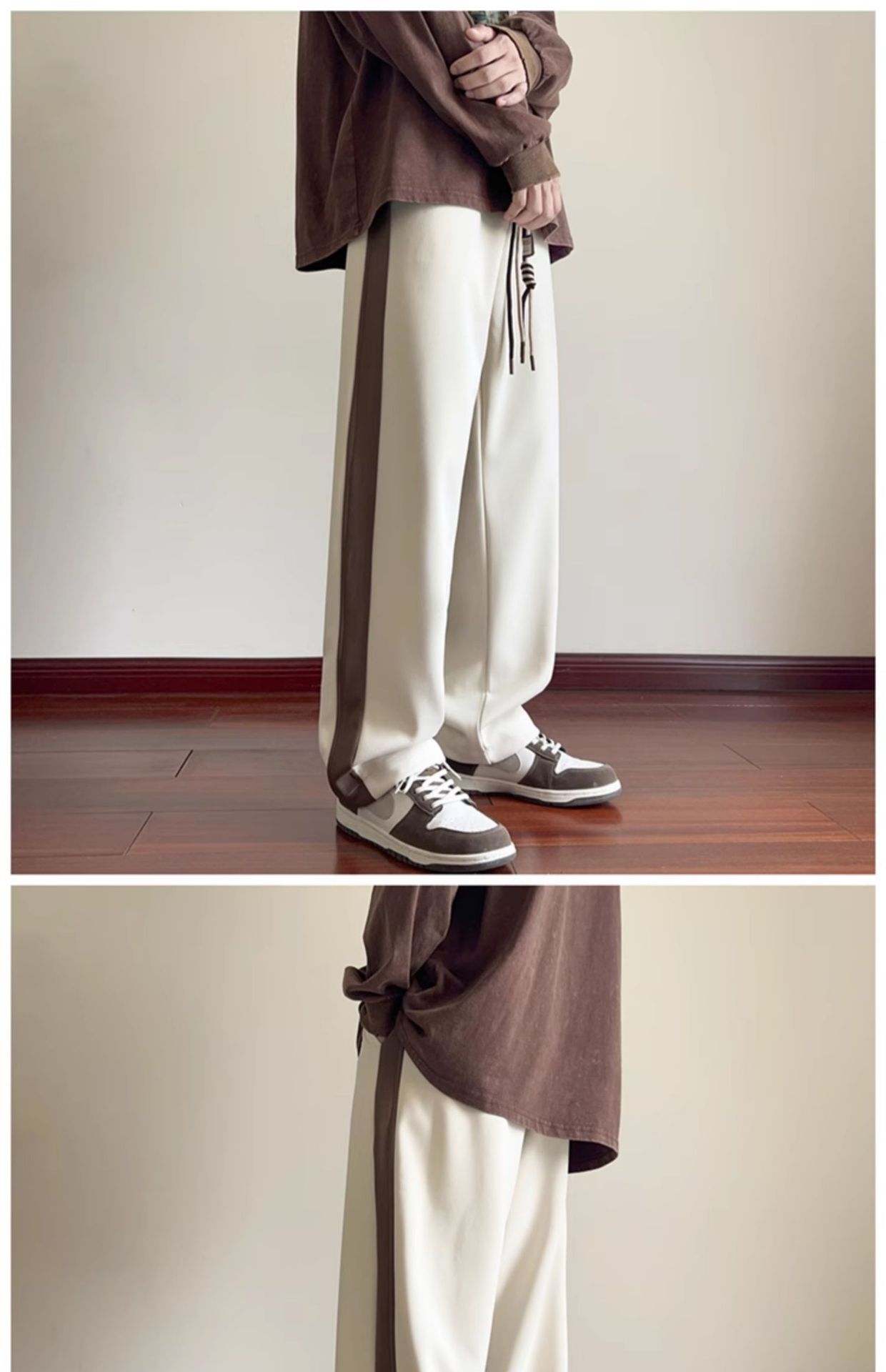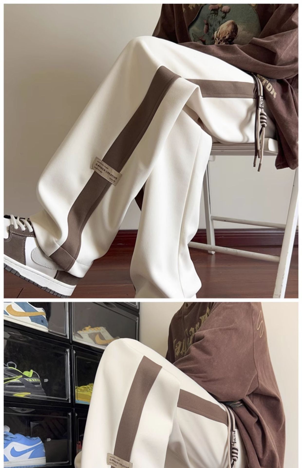 여름 드레이프 스트레이트 얇은 시즌 청소년 스포츠 바지 컬러 블록 스웨트 팬츠 남성 트렌디 루즈 레이지 릴렉스 팬츠