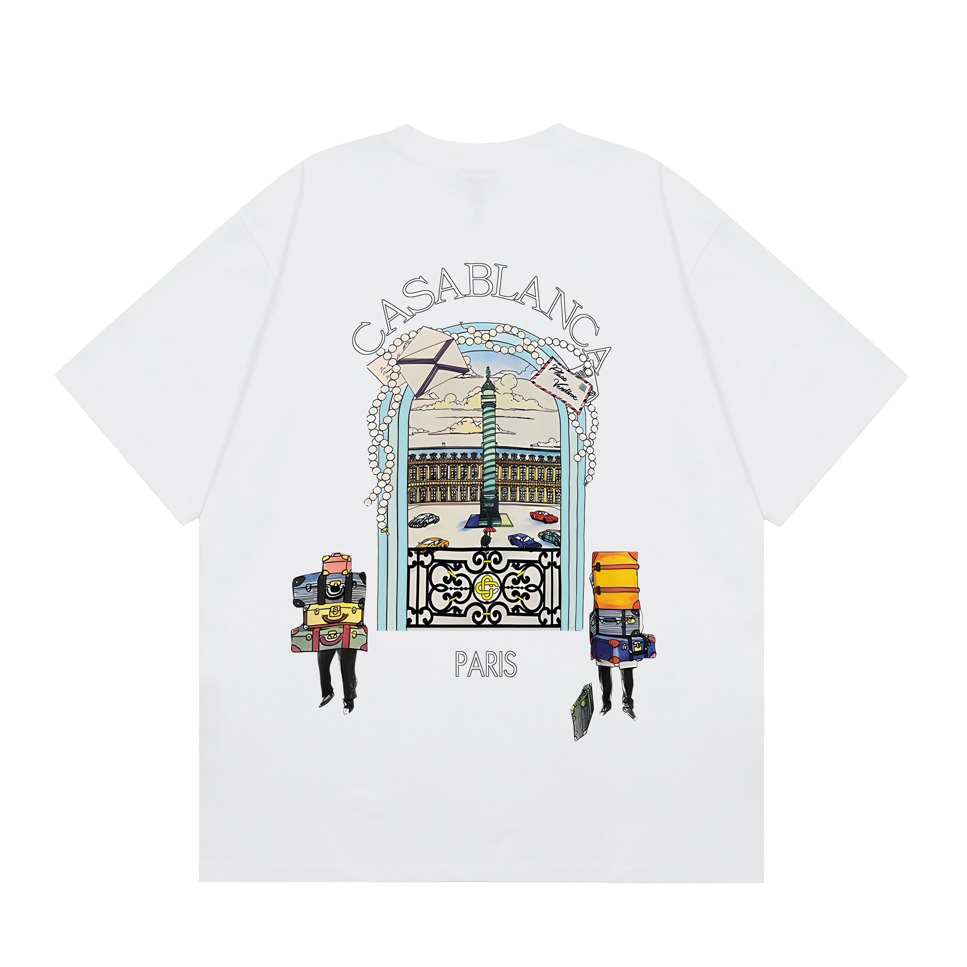 Casa American 트렌디 브랜드 온라인 반팔 남성 커플 ins 여름 슈퍼 핫 티셔츠 여성 탑 반팔 루즈 유럽 버전스토어 가기