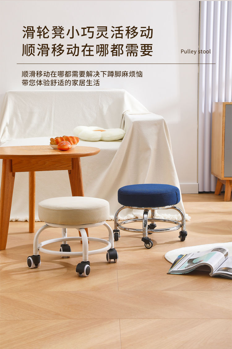 중노년층을 위한 만능 뚱뚱한 둥근 스툴, 회전식 가정용 스툴, 작은 스툴, 바퀴 달린 의자, 이동식 범용 회전 신발