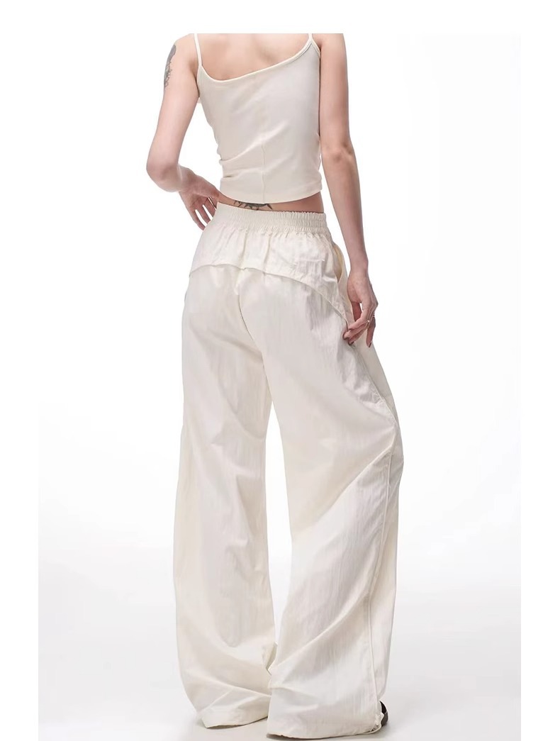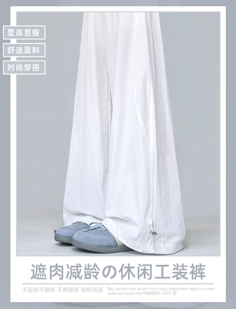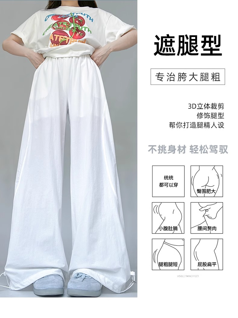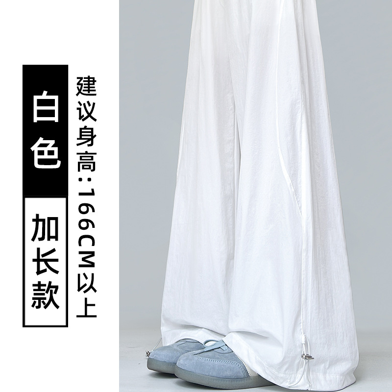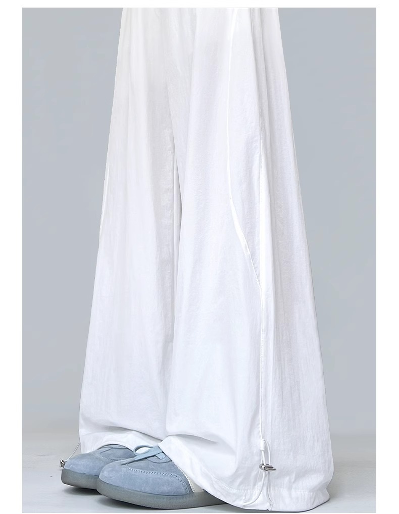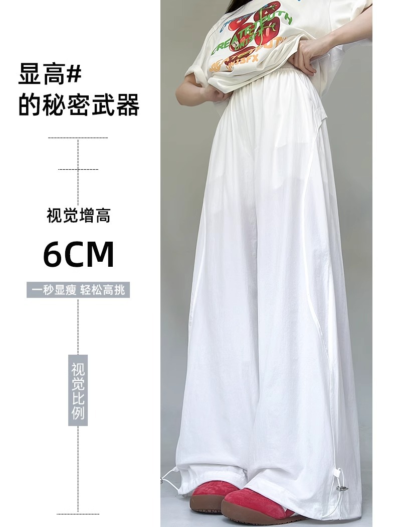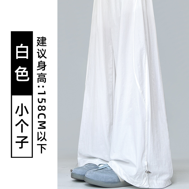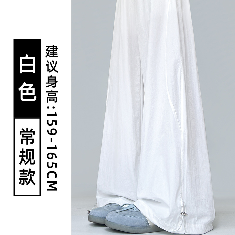 여성용 흰색 속건성 작업복 여름 얇은 2025 새로운 하이 웨이스트 슬림 루즈 드레이프 아메리칸 스포츠 바지